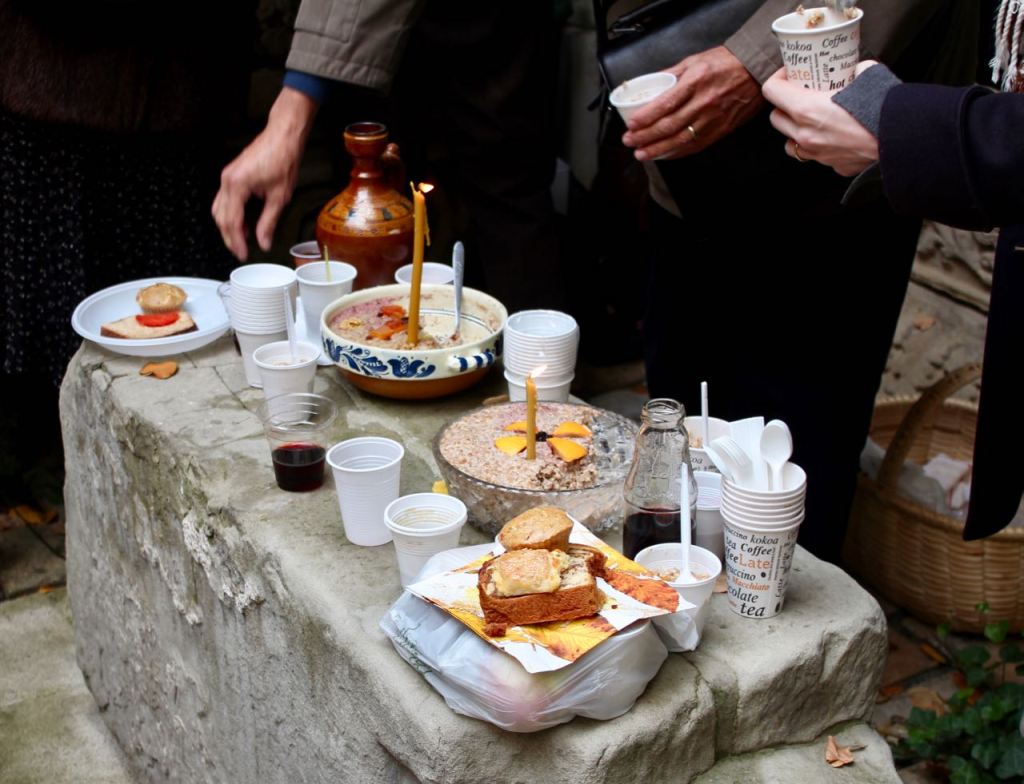 It’s indeed a lovely place to visit. The tiny church is open to the public, so you can admire its beautiful and intricate interior decorations. But what I wasn’t expecting was to visit it in the middle of their own celebration of the day of the death or All Saints Day. It was the 2nd of November, and people were gathering in its yard and offering food and drinks to the passersby.