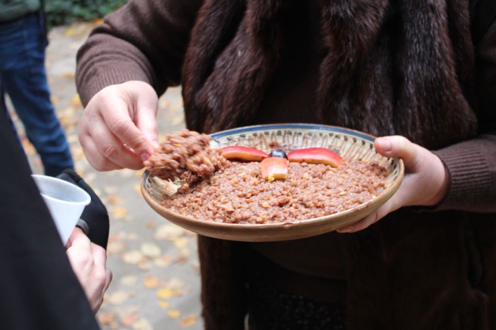 It was an incredible experience. Everyone was so nice and welcoming, offering me food and insisting on giving me more. I was so glad – I went to the right place at the right time. I was given toast with veggies and some kind of hummus. Also, a different kind of porridge which I could not identify what exactly was, but it tasted so nice.