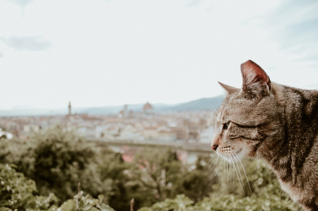 The Renaissance Cat | Florence, Italy – It was May, a warm day in Florence and I was admiring the crib of Renaissance from afar, in Piazzale Michelangelo. This cat was there to have his portrait made with the beautiful city in the background. You can distinguish the Cathedral of Santa Maria del Fiore and Giotto’s Bell Tower.