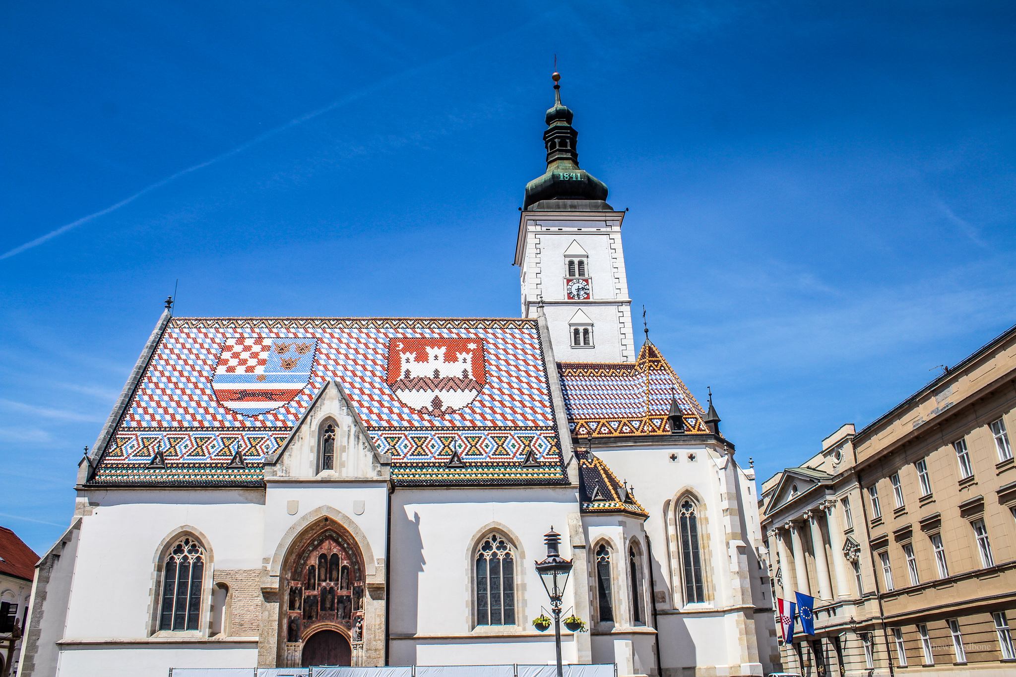 Its colourful tiled roof, constructed in 1880, has the medieval coat of arms of Croatia, Dalmatia and Slavonia on the left side, and the emblem of Zagreb on the right.