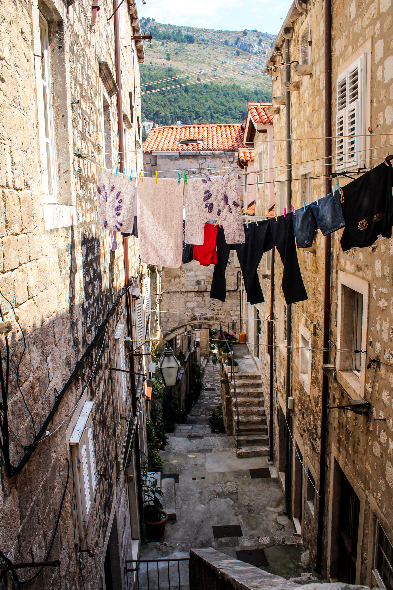 My favourite activity in Dubrovnik was literally to get lost in the maze that all of those narrow, stoned streets put together. I could spend hours there and every time I would find a new courtyard, a strange fountain, nicely arranged flowers popping up with colours against the yellowed stone. Here’s a selection of my favourite shots of those streets.