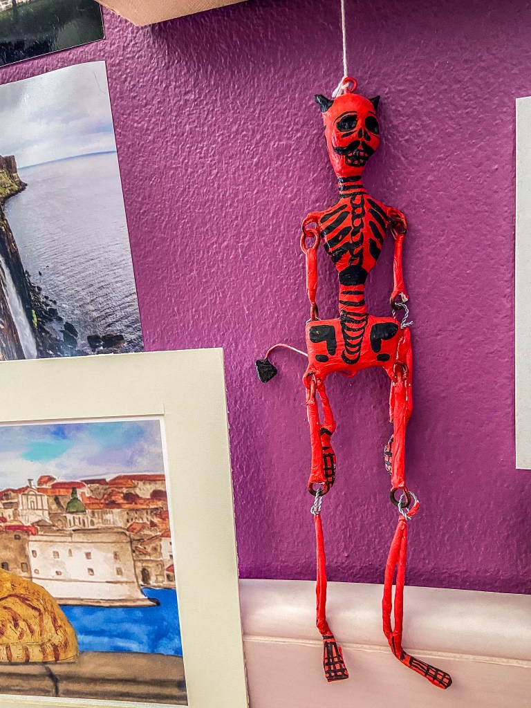 Now… if there is something I love is skulls – and Frida Kahlo. So when I saw this, I simply had to buy it. The little devil skeleton is also handmade – part of Mexican folk art, made of papier machie and used to celebrate the Day of the Death – an event I hope to be able to experience in Mexico at any time in my life. I just love the way Mexico