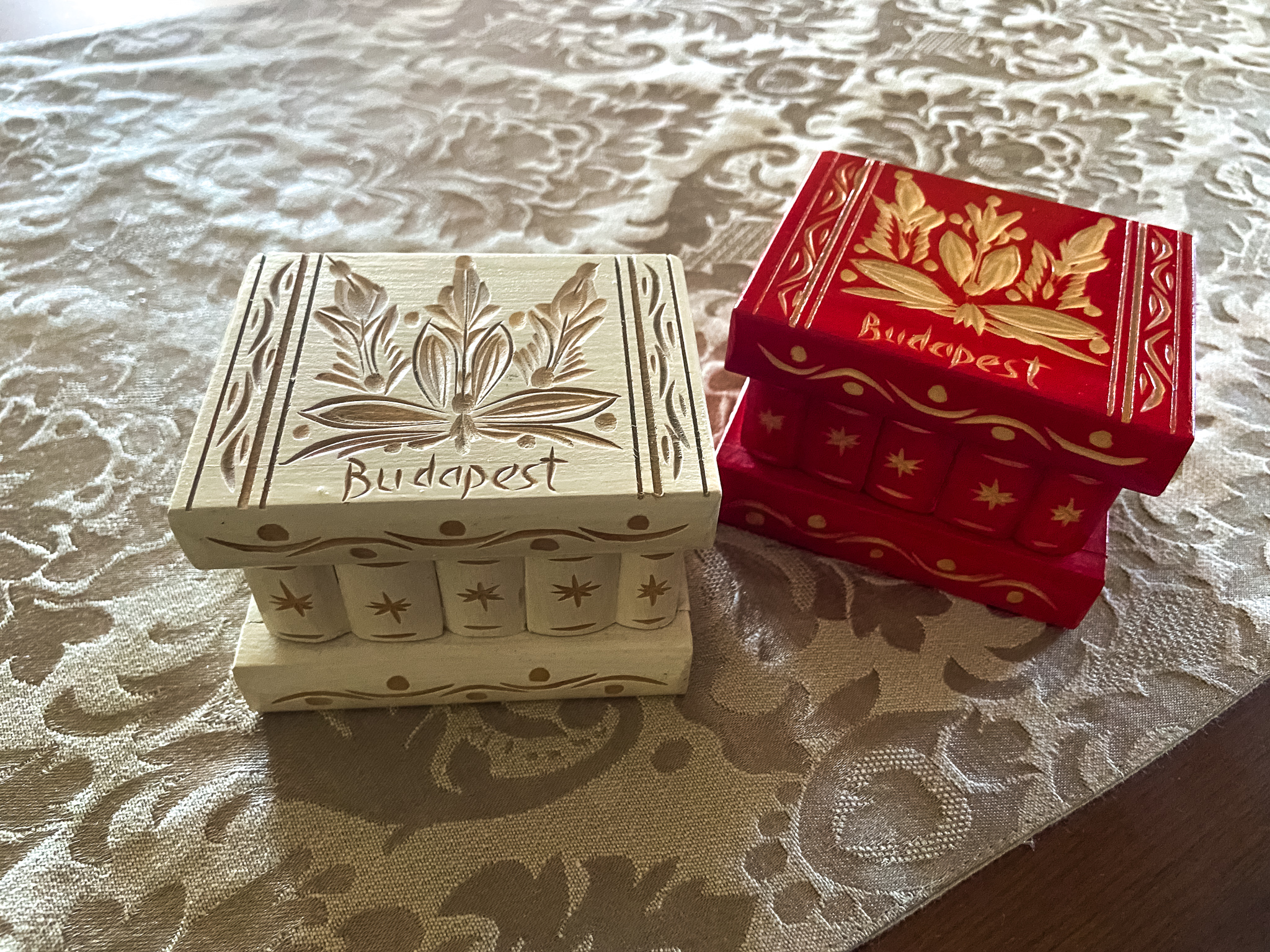 Let me show you the Hungarian boxes (the red one was a gift I brought for my sister). These are the perfect boxes to keep anythign secret, since to open them is almost like solving a rubik’s cube. I couldn’t open none of ours when I tried, because it seems the wood has swollen and it’s impossible or at least very difficult to move the different pieces. These were handmade and I brought them from Budapest.