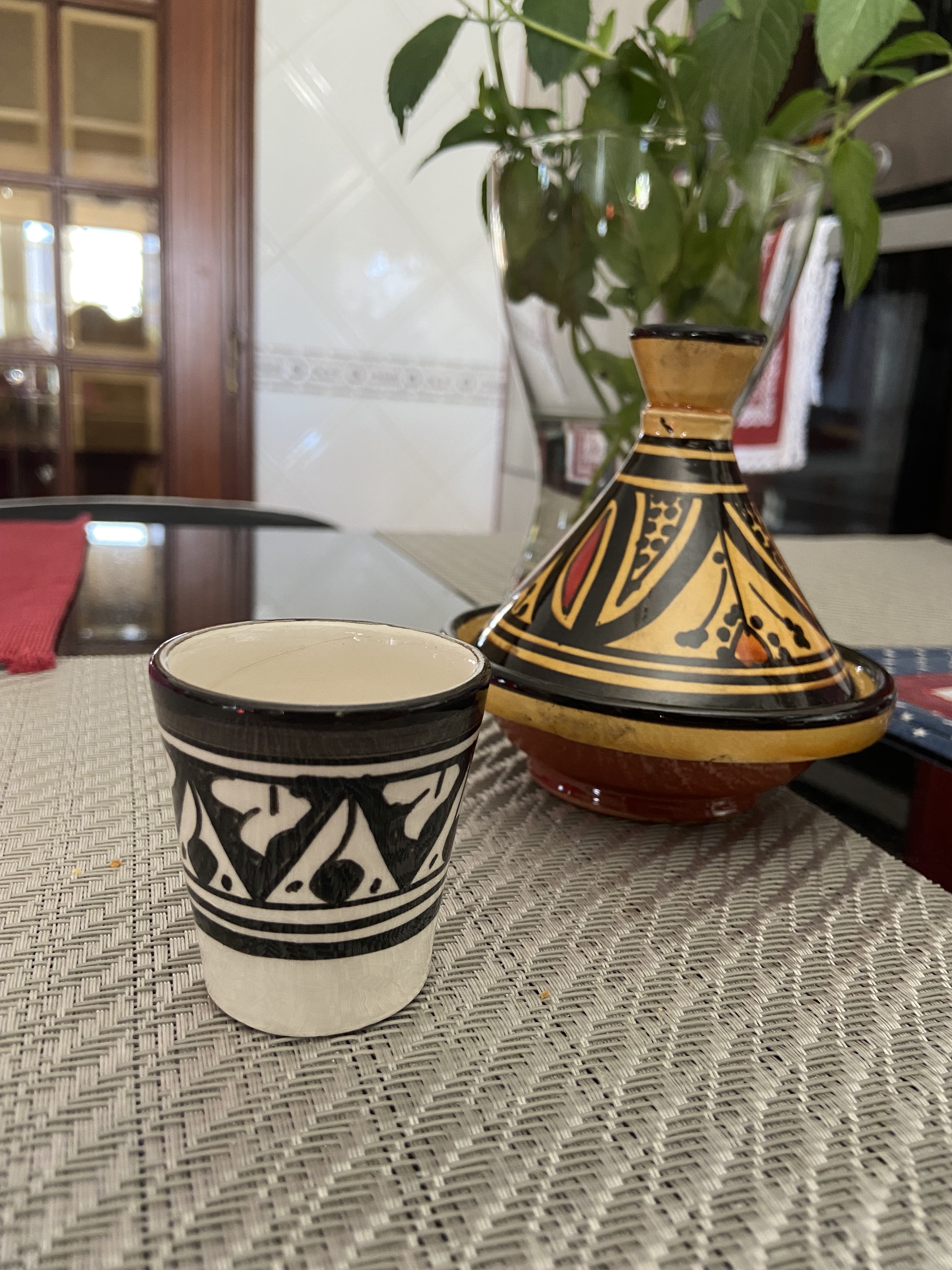 Morocco was one of those destinations where everything I wanted to buy was either too big to put in my backpack or required a nice house for decorating purposes (yes, I’m talking about carpets and beautiful huge chandeliers). I bought a small cup of coffee from a local ceramics shop (in the picture, it’s next to a little tagine also bought in Morocco but as a gift for my parents) which I find adorable. And this mirror – which was the perfect size for my room in London. These two are definitely my favourite souvenirs from Morocco.