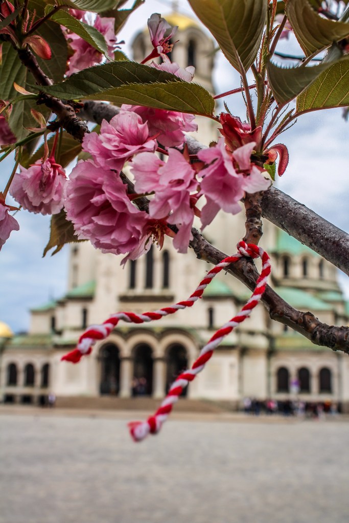 So, when I was in Sofia, I was looking out for these little amulets and found them in the most beautiful, blossomed trees. Some say that the red and white are the colours of Mother Nature, with white symbolising the melting snow and red the setting sun, which becomes more intense as Spring advances. Others say that the white symbolizes man and the red woman. I prefer the first explanation.