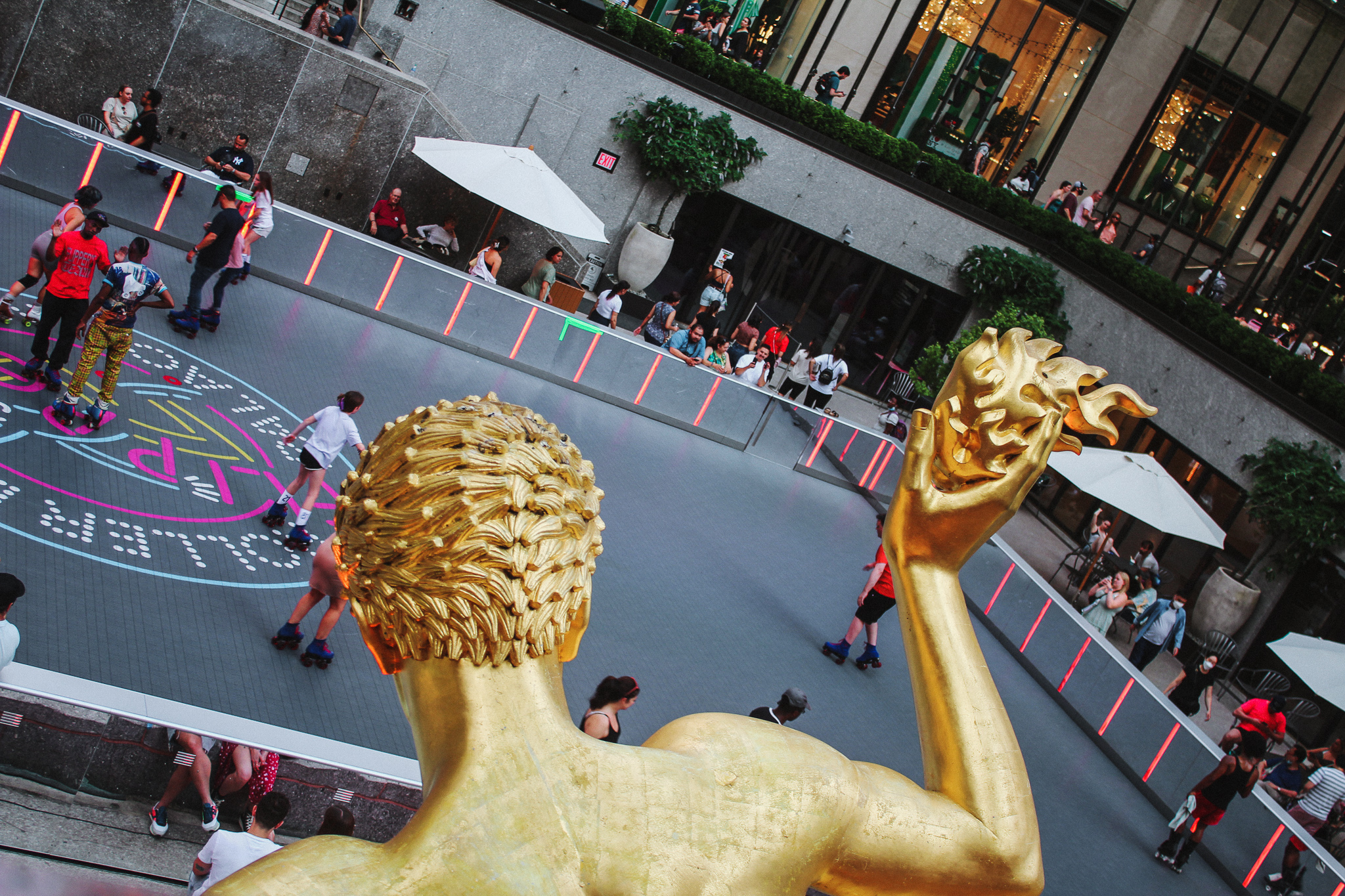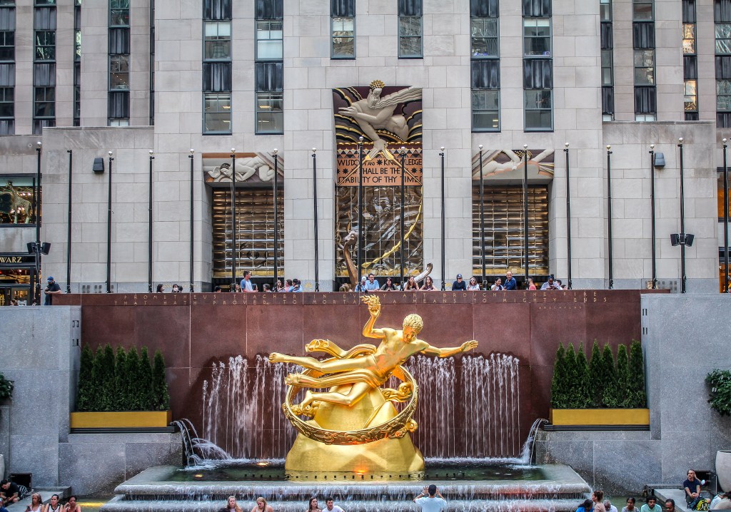 Still carrying my also sweaty camera, I photographed the golden Prometheus. And I stepped into the place where the famous Christmas Tree is put on every single year, dazzling New Yorkers and tourists alike, from there and from afar.