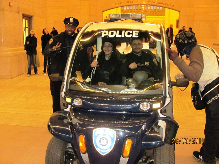 The first time I was at Grand Central Terminal was in 2010, when my parents took me to finally meet the country I had been born in. While I gazed in awe at my surroundings, a spectacle of golden light reflected warmly against the marble walls, trying to absorb it all, forgetting momentarily that I may be in the way of people running to catch their train, holding my digital camera weakly, I was approached by a policeman. I can only imagine he saw in my expression the innocence of someone who hadn’t seen such grandeur in her entire life. Who had experienced nothing of the world beyond the limits of a small town in Portugal. He offered to take a picture of me inside his little police car. And here is the proof that this indeed happened. It still makes me laugh.