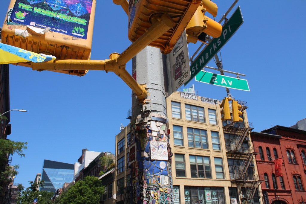 Walking in this street, pay attention to some mosaic-encrusted poles, The man behind these was Jim Power. He returned from military service in Vietnam with undiagnosed PTSD, sadly becoming homeless after not being able to lead a normal life. He started decorating the poles in the street, which had a therapeutic value for him.