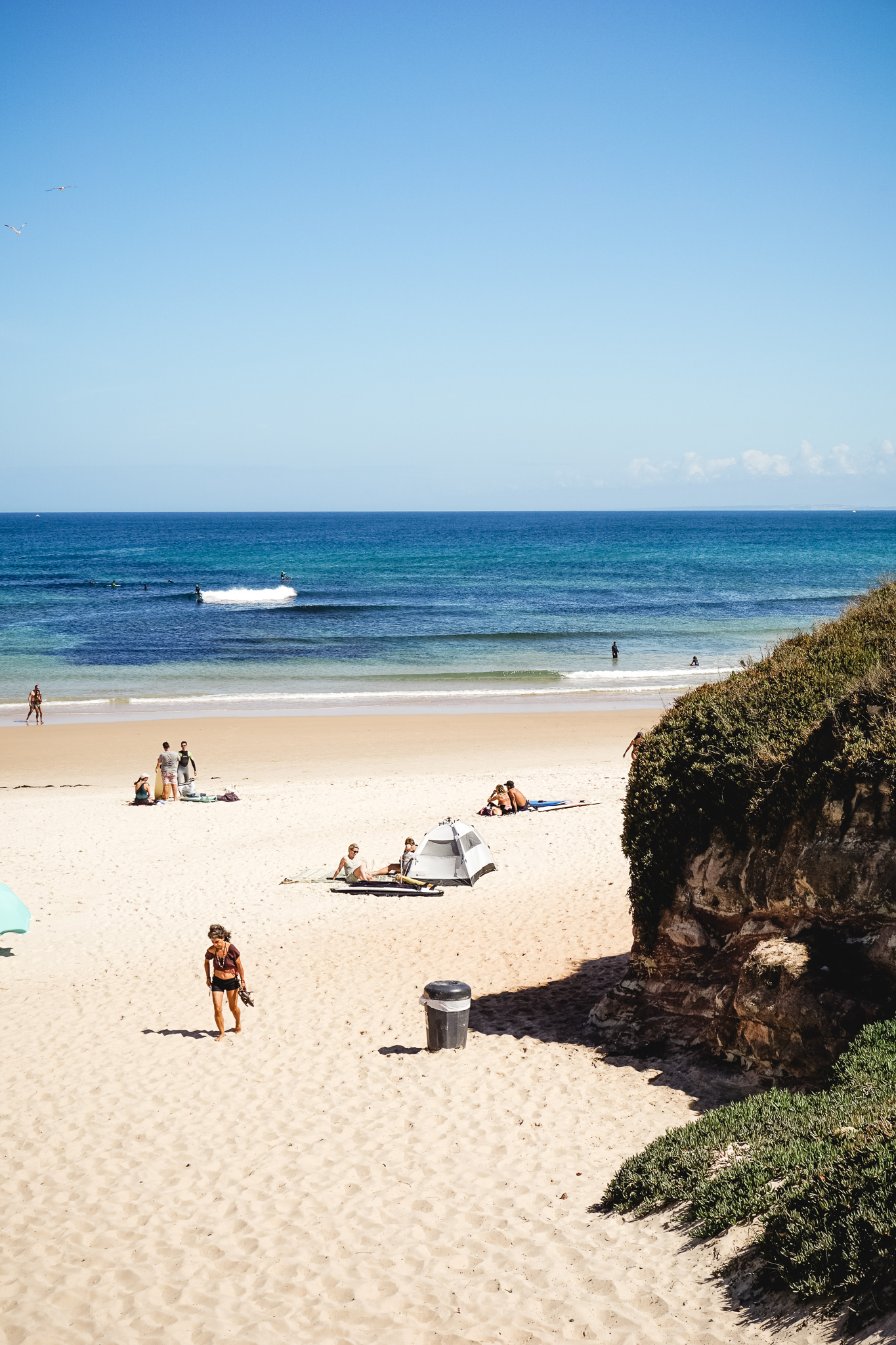 There is just something special about this beach – so clean, so friendly. If you don’t surf, like me (I tried once, in this beach, but the experience was simply not great…), this is a place where you can tan in the sun, go for long walks alongside the sealine and admire the rock formations, find starfishes, dog watching – in the absence of parks, such places like Baleal are a playground for dogs and its owners – and also, watch the surfers. And if you are brave enough to enter the cold waters of the Atlantic ocean – like I’m proud to say I was – it is incredibly safe to swim. Obviously, always check if there is a green flag, as currents are still a thing.