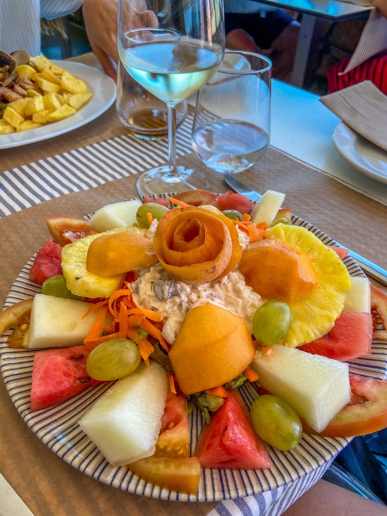 This was a rare one of a year time family day out, so we did go to these overpriced restaurants and I did get an overpriced salad described as exotic – a feast of fruit and vegetables that I could not finish on my own.