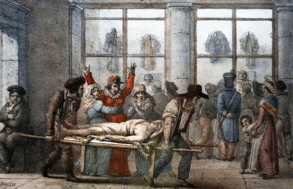 But why display these dead bodies, collected from the street, to the public? Had they no sense of decency or respect for such poor souls? The official explanation is related to the need of recognising the identity of the corpses found in the streets and even sometimes in the Seine. The public was allowed to enter, look at the bodies and help with identification. In some instances, the murderers were also caught whilst visiting the Morgue. There was also a message to be told – this is what happens to you if you misbehave. You’ll end up dead in the dirty streets of Paris, or your body phished from the Seine. And then, hundreds of people will see your decomposing naked body on display…
