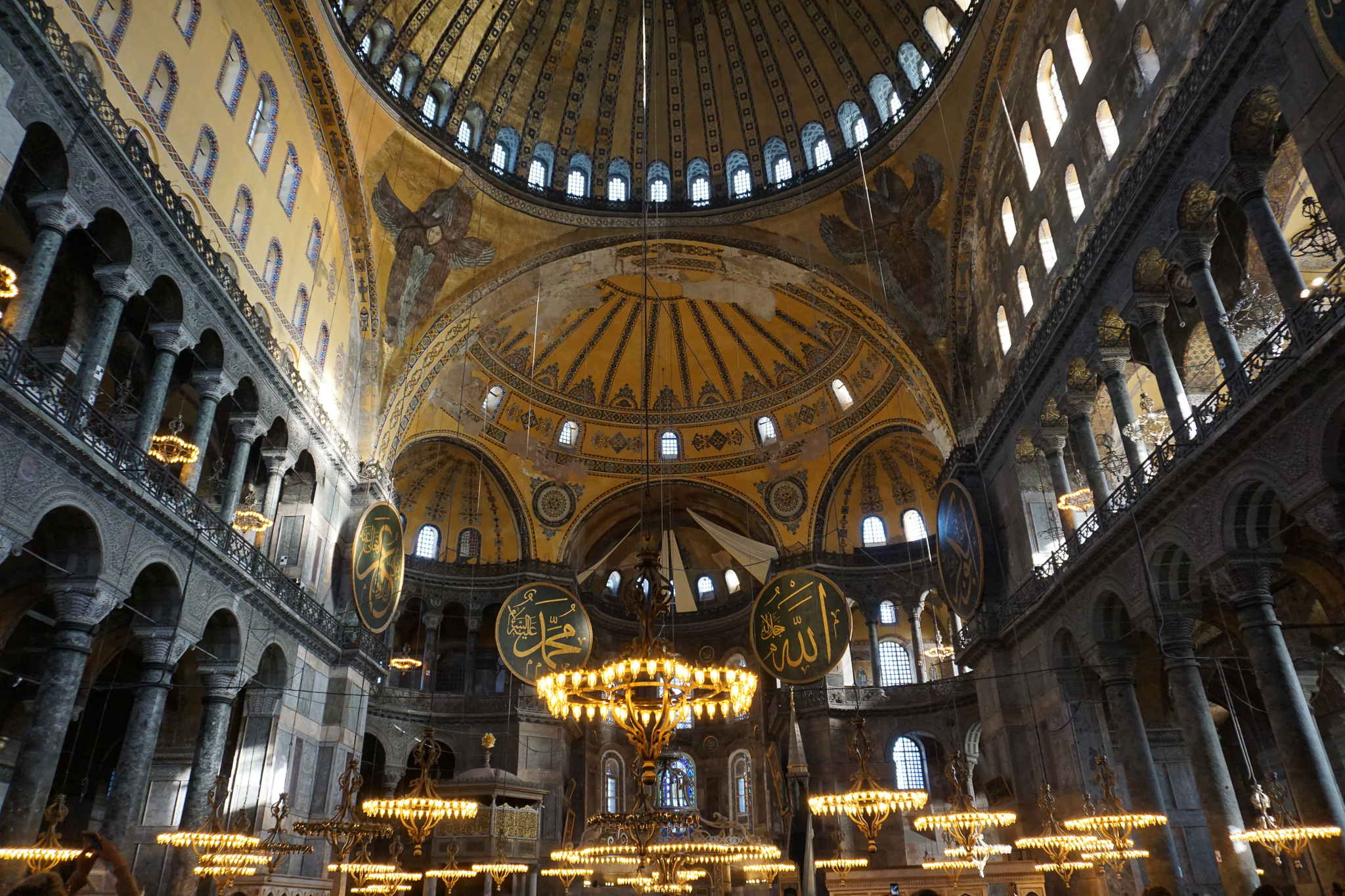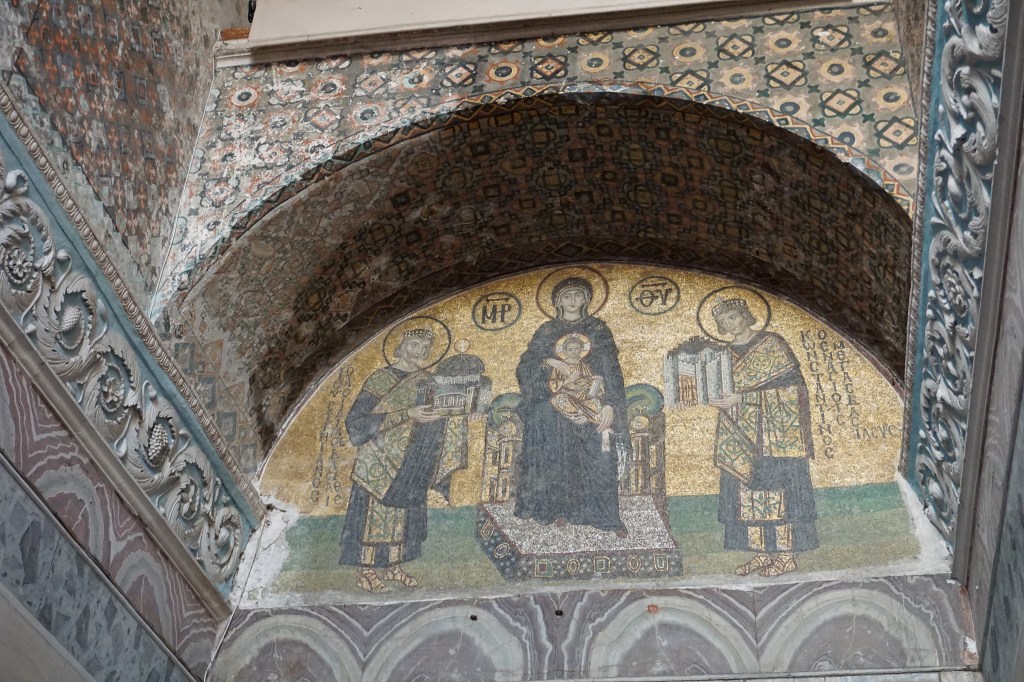 For most of its lifetime – a very long one as Hagia Sophia (meaning Holy Wisdom) was erected in 537 – this place was a Church, more specifically a Greek Orthodox Cathedral. Whilst most symbols related to Christianity are currently hidden, if you pay attention you can still find them (photo below of mosaic representing Mary and Jesus). It only became a Mosque in 1453 upon the conquest of Constantinople by the Ottoman Empire. As described in my first post on Istanbul, before Constantinople, the city was called Byzantium. And Hagia Sophia was truly to be considered the epitome of Byzantine Architecture. It remained the world’s largest cathedral until of course, it was converted into a Mosque. But even once transformed into a Mosque, the Cathedral of Seville in Spain would take that title away in 1520. Still, Hagia Sophia became the model through which orthodox churches were to be designed and this style was to be adopted by the Ottoman mosques a thousand years later.
