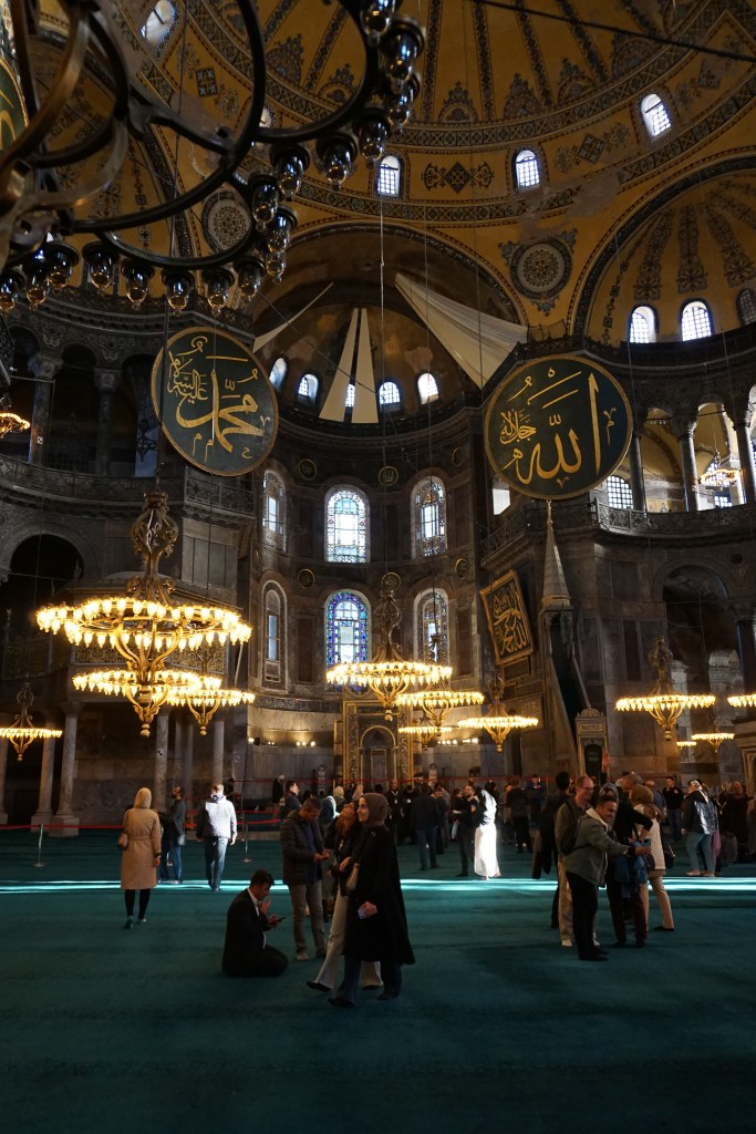 Still, the reopening of Hagia Sophia as a Mosque may be a little more problematic than it seems. The tour guide was joking but I could sense the tension in his words. It shows how dangerously intertwined religion and the state are, becoming one. It was argued that Hagia Sophia is the personal property of the sultan and the building symbolizes the Muslim identity of Turkey. This was quite controversial – against it were the members of the opposition, UNESCO and, of course, the World Council of Churches. Bear in mind that since Hagia Sophia is a Mosque, you don’t have to pay an entry fee. So imagine how much money they could make if they kept Hagia Sophia as a museum that celebrates both orthodox and Muslim cultures, rather than making it back into a Mosque where no one goes to pray…