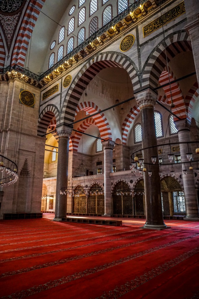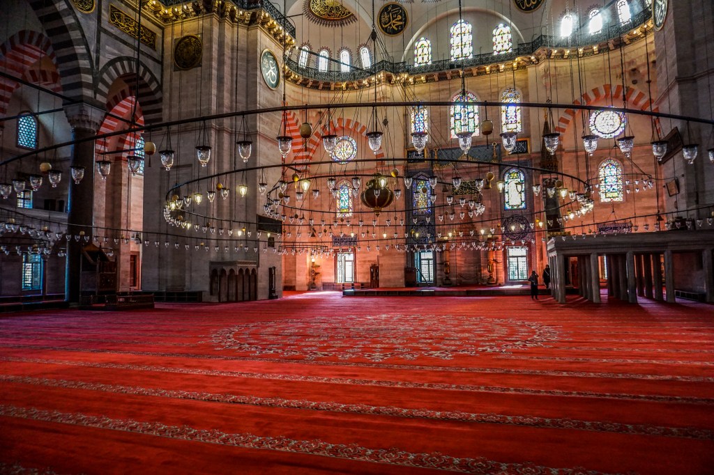 Wow! The Süleymaniye Mosque looks indeed amazing. The same style as Hagia Sophia but the decoration is exquisite. I love the contrast between the gold ornaments and the red arches and carpets. Quite strange that it attracts fewer visitors. Perhaps people get bored after seeing the Hagia Sophia and the Blue Mosque which have similar designs. By the way, happy new year! 🙂