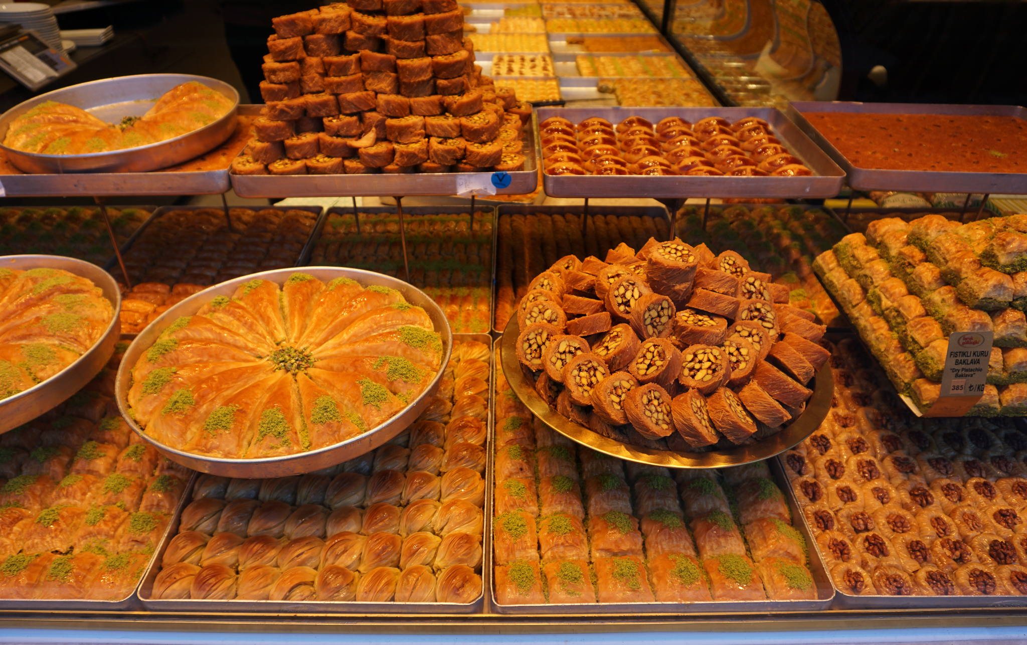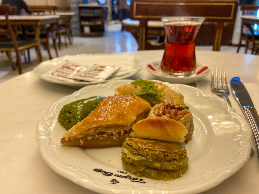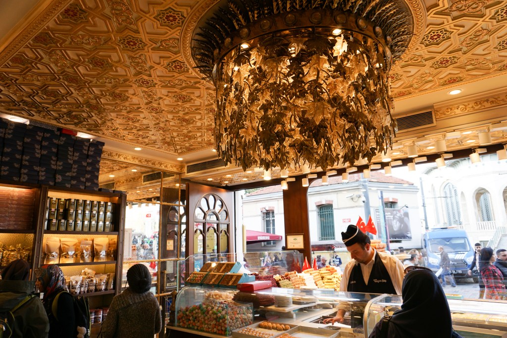 Nowadays, clothing and footwear stores dominate the street, including cinemas, galleries and music venues. the old restaurants and chocolateries will also call your attention. I did go to eat some baklava in the beautifully decorated restaurant Taksim Sütiş – which I highly recommend if you want to take a break from walking.