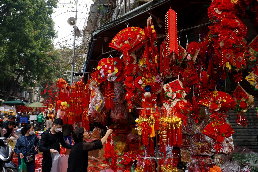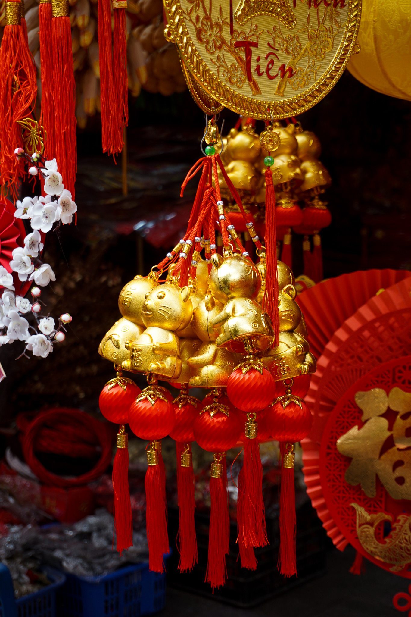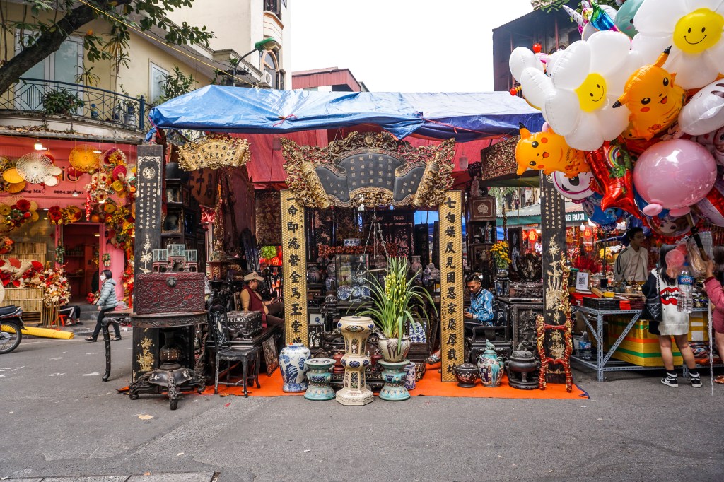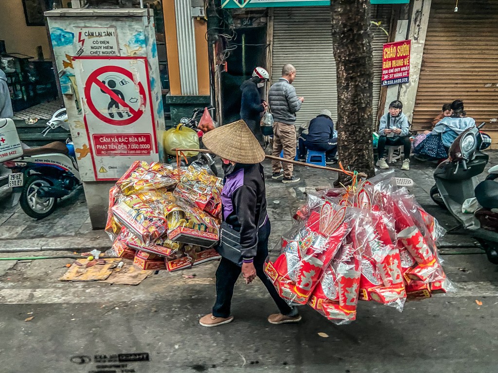 In the Chinese culture (bear in mind Vietnam was under the dominance of China for almost a thousand years, so there is a very strong cultural influence), red relates to fire and energy and has come to symbolise vitality, celebration, good fortune, good luck and prosperity. Red lanterns, red hangings, and red money envelopes were being sold, with wishes for a new year in the Vietnamese language and cats were the predominant figure. But well, the Old Quarter of Hanoi is all of it a market with every street being about specific things – something that despite the mopeds and the modernisation of the country seems to have remained unchanged for the past five centuries, and the street names still reflect that.