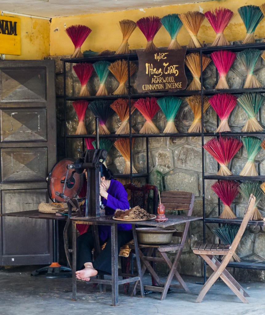 So if you can, do stop in Hue. I spent two nights and almost 2 full days there, and it was enough to see the main things – getting to the tombs, exploring the Imperial City and also getting to the Thien Mu Pagoda. On the way to the tombs, my driver also stopped by what is known as the Incense village – clearly a shop stop, but I wanted to buy some incense anyway and if I can help the local commerce a little, why not?