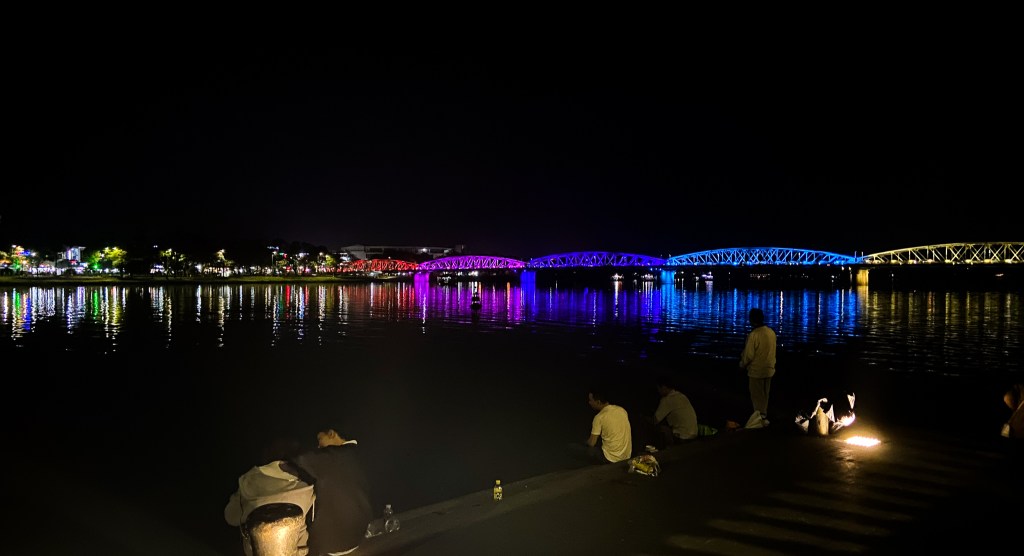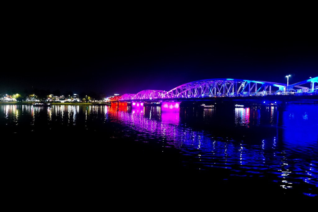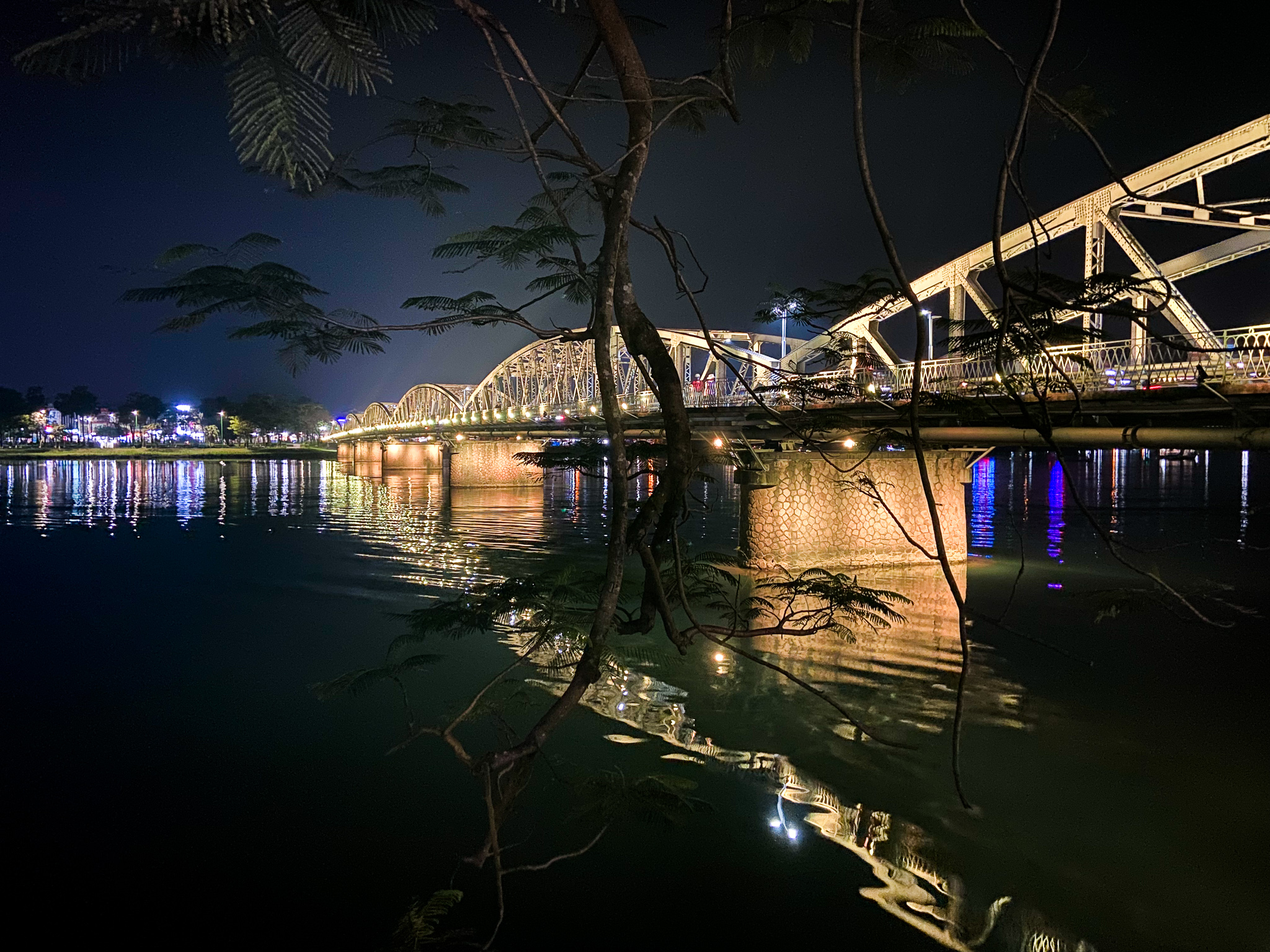 After all of this sightseeing, you’ll be hungry and also potentially in need of relaxation. Perhaps because I was in Hue over the weekend, I was pretty surprised by how it came alive at night. Some of the streets were closed to traffic (which is in itself such a relief), and bars and restaurants were blasting music out loud and full of crowds of young people drinking, chatting, and laughing. Take a walk to the riverside and watch how the bridge changes colours and the beautiful reflection in the waters of the Perfume River.