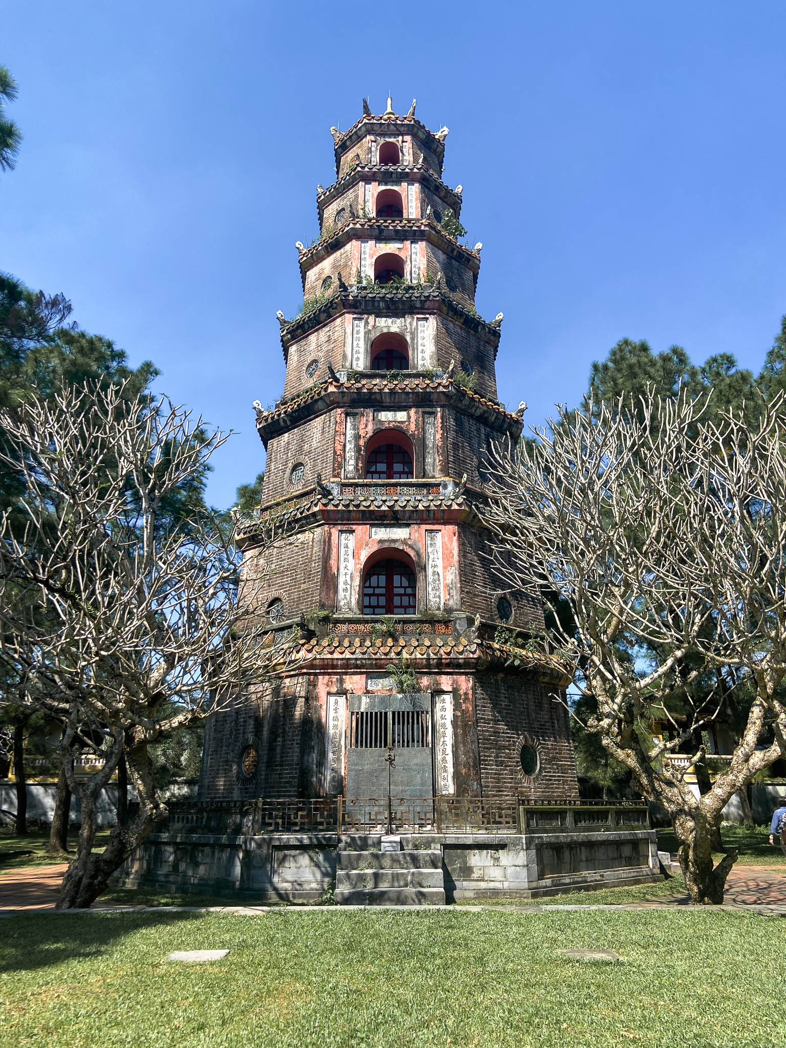 The Thien Mu Pagoda is free to visit and it was definitely another highlight of Hue. It sits on the Ha Khe hill, in the Huong Long village, about 5 Km from Hue city centre – to get here you will need some sort of transport – this was included in the drive I booked to the Tombs. Thien Mu means Heaven Lady and it comes from a legend about an old woman who appeared on the hill announcing to the locals that a lord would come and build a Buddhist Pagoda for the country’s prosperity.