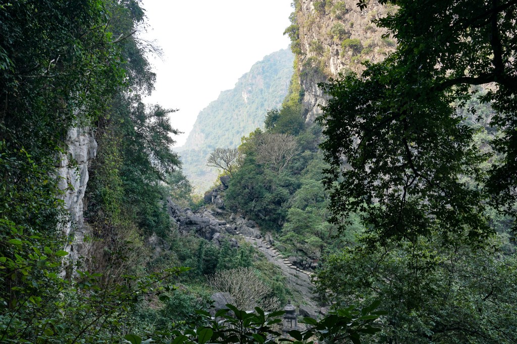 The pagoda is nestled between the mountains, and surrounded by dense greenery. when I visited, there was no one else around. As I was going in, some tourists were leaving, which intensified that sense of eeriness I had already been feeling. In fact, Bich Dong means Emerald Green Grotto, named this way precisely of its surroundings. The pagoda was built in 1428 under the reign of Ly Thai To. It was rediscovered in 1705 by two Buddhist monks. They found the place covered in vines and vegetation. So they started the rebuild.