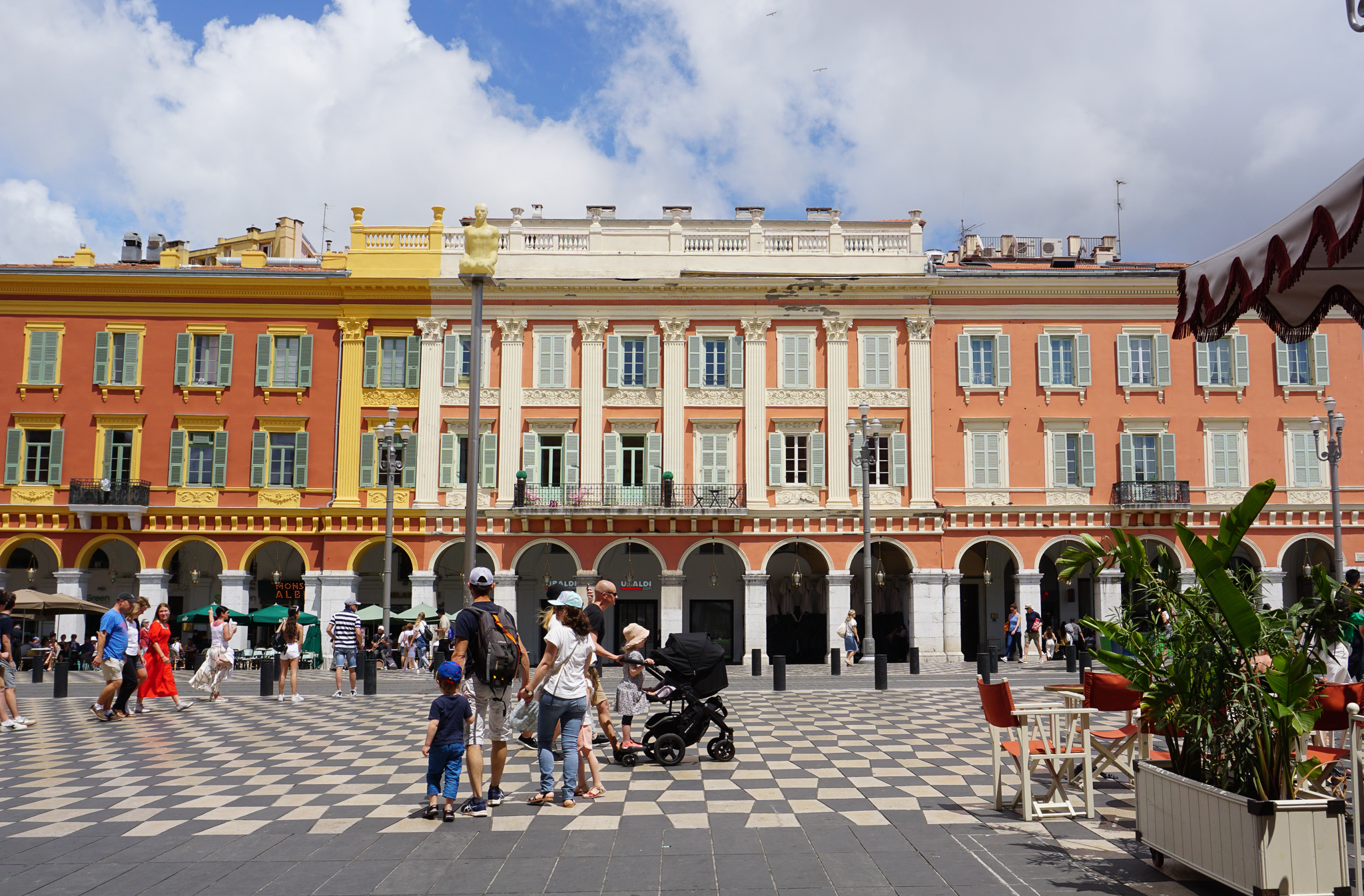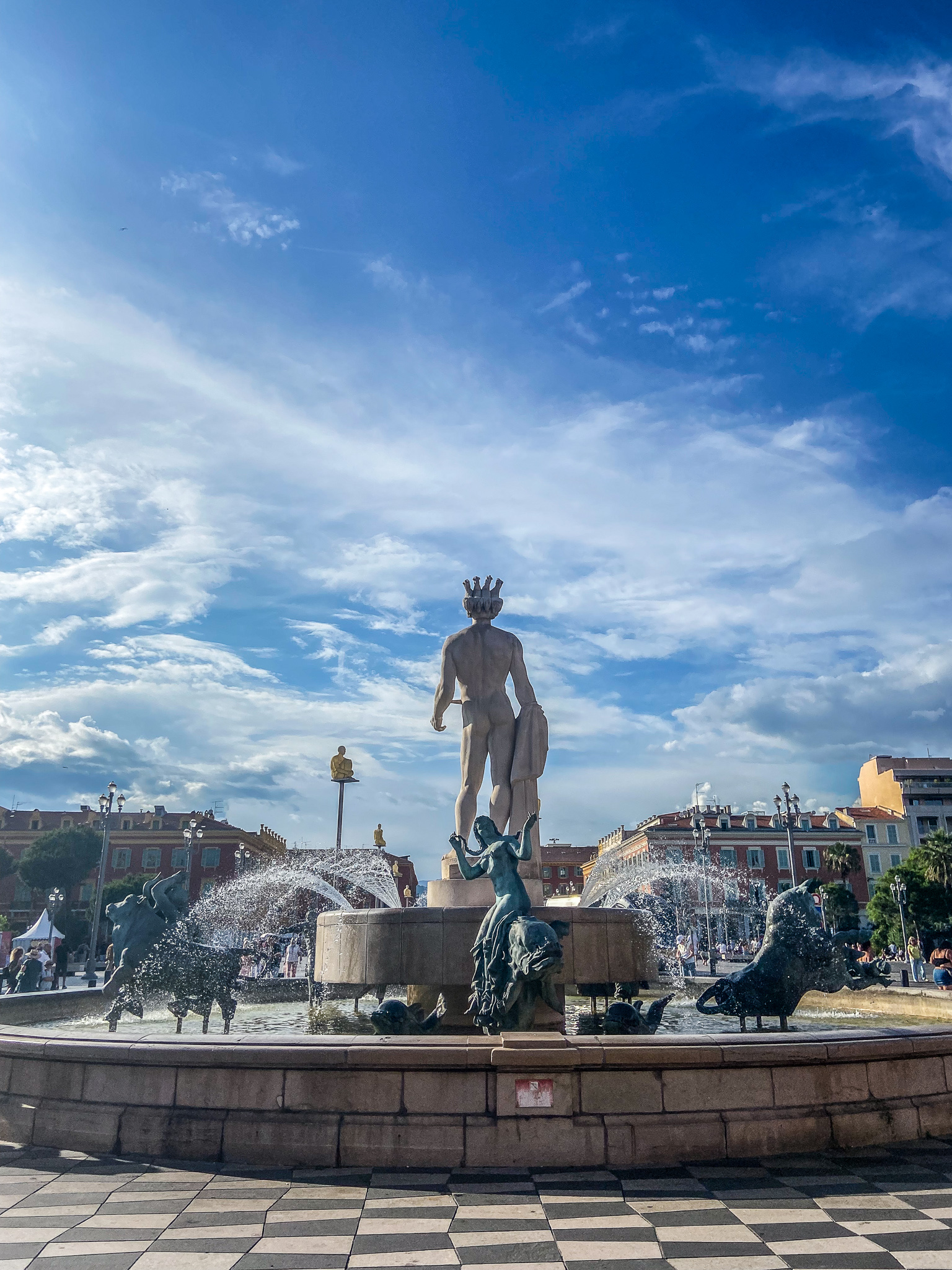 As I walked towards the beach, walking down Avenue Jean-Medecin (the main shopping street) I was then finding myself amid the Plaza Masséna, surrounded by red walls of Neoclassical buildings, lively with great esplanades and finished off by the Fountain of Soleil, where a statue of Apollo, the god who carried the sun, welcomes you into the other side – to the Promenade des Anglais, a seven-kilometre long walkway by the seaside.