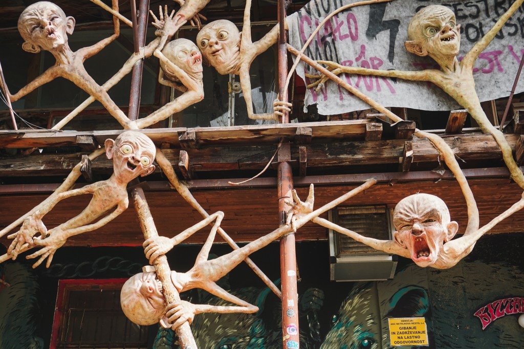 And so, one thing that you should absolutely not miss is Metelkova. This is the perfect example of the power of new forces and new ways of living, of arts taking over a space tainted with bad memories to create something new, different, and beautiful, that mostly represents freedom of expression in any form. Metelkova was once the military headquarters of the Austro-Hungarian Empire and after it became the Slovenian HQ for the Yugoslav National Army. It’s made of seven barracks, which have been squatted since 1993 to form what is known now as the “Metelkova City of Autonomous Cultural Centre”.