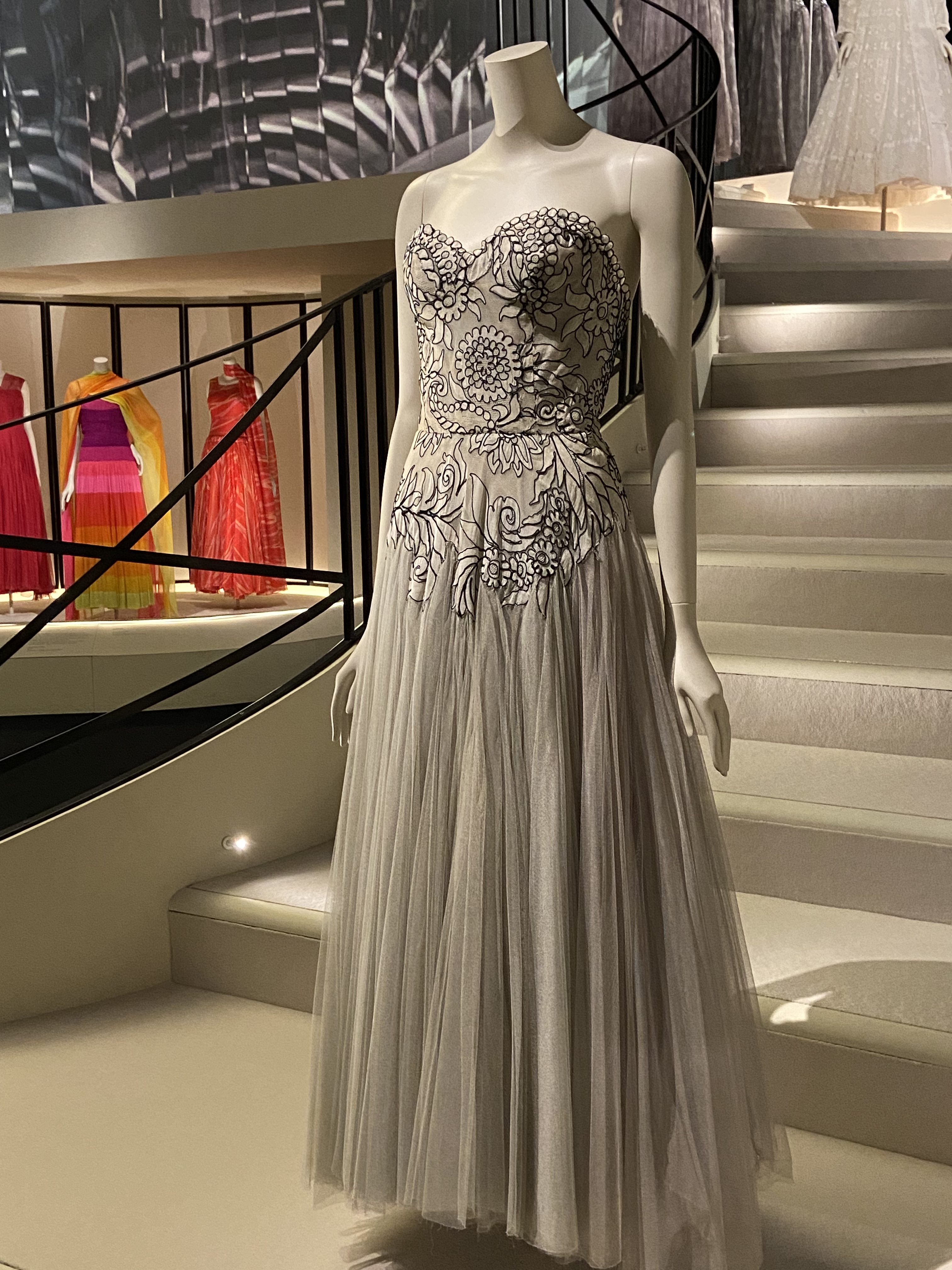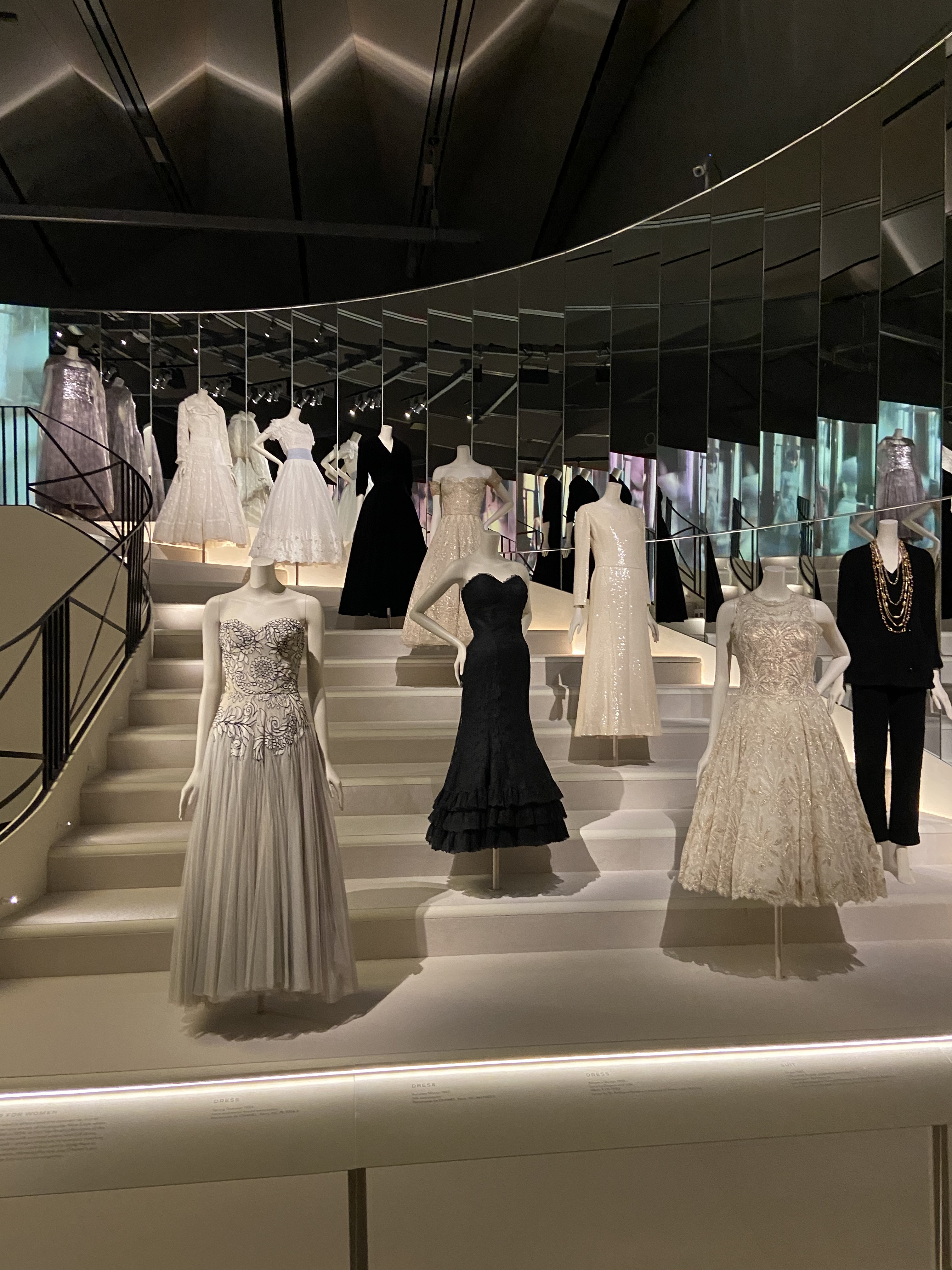 And thankfully, went back to work with a comeback collection in February of 1954. She was comfortably living from there even of her perfume sales at the time, so from an income perspective there was no need for her to go back to work after the war. It’s said the reason she decided to do so was as a response to Christian Dior, who is seen as one of Chanel’s biggest rivalries. Gabrielle was 71 at the time. Still, a lot of her last creations include elements of Dior’s creations, as this was how fashion had been evolving at the time. Funny that is was not that long ago that I visited christian’s Dior’s exhibit in this exact space!