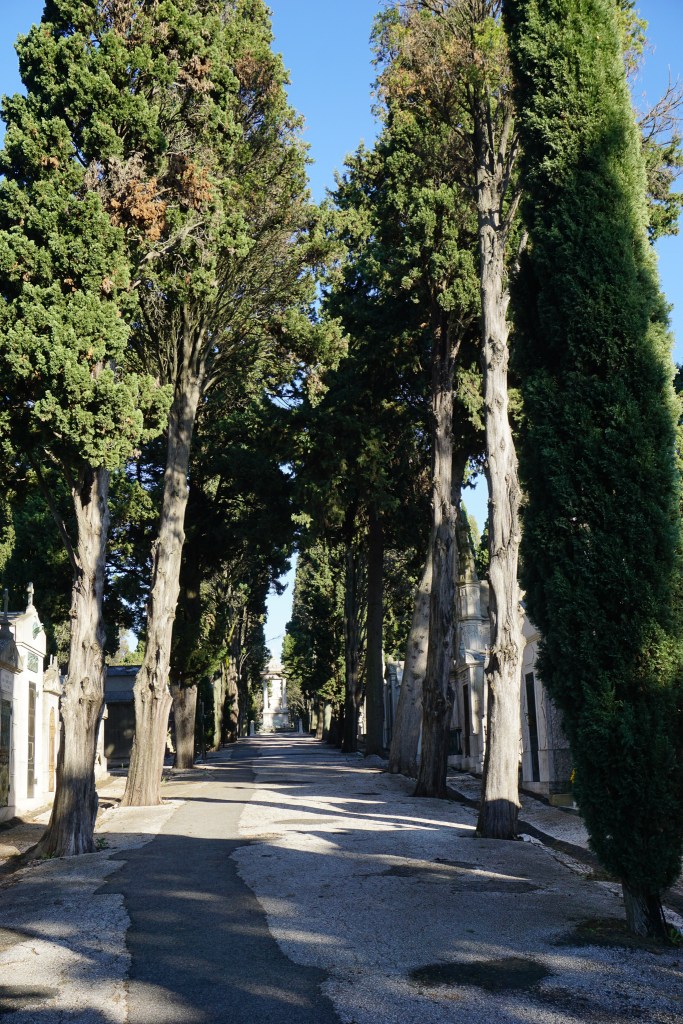 I spent last weekend with a friend in Lisbon and since this is not been the first time I have been in the city, I was trying to figure out what could I visit for free that I had not visited before. I have a weird fascination for beautiful cemeteries. In London, I loved the old Victorian cemeteries, with a charm that only partial abandonment can lend combined with gothic architecture. I can tell you in Portugal most cemeteries are quite ugly, without any green, and therefore not exactly places to go for a leisure walk. That was when, whilst looking at Google Maps, my attention was drawn to this cemetery named “Prazeres” which in Portuguese means “Pleasures” – the Cemetery of Pleasures. And of course, this spiked even more my attention. Upon commenting with my friend, she diligently informed me she thought I’d like to visit the place, as it’s exactly my kind of thing.