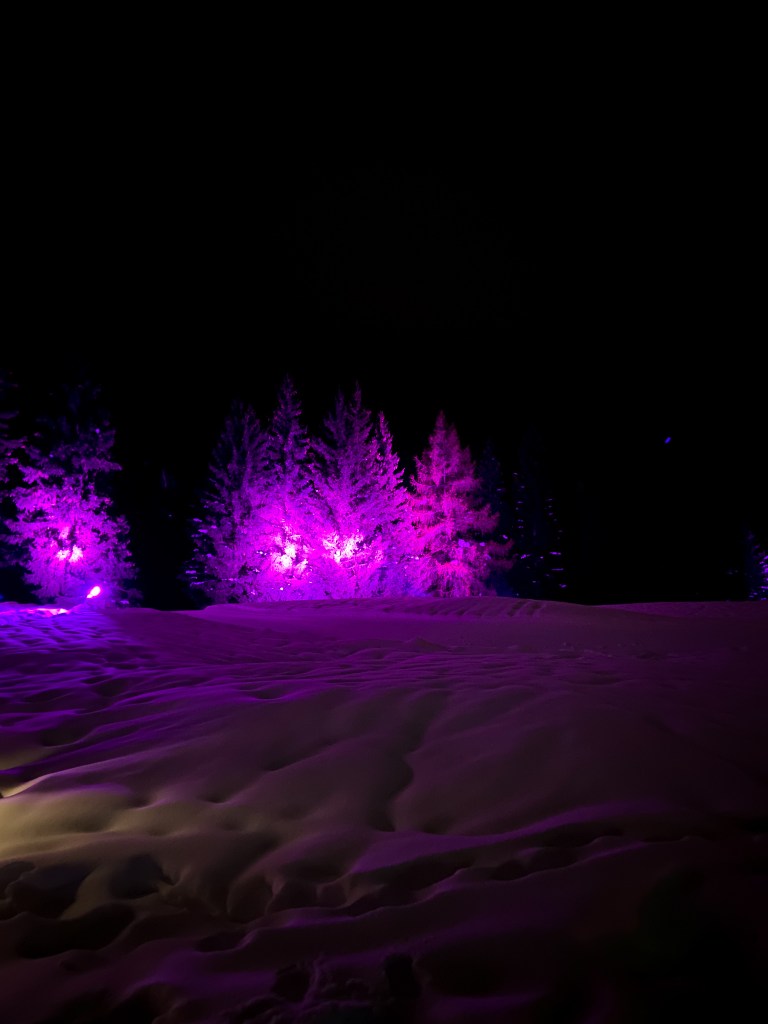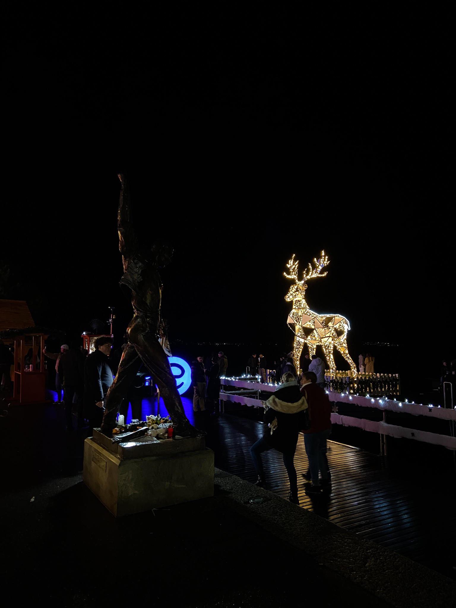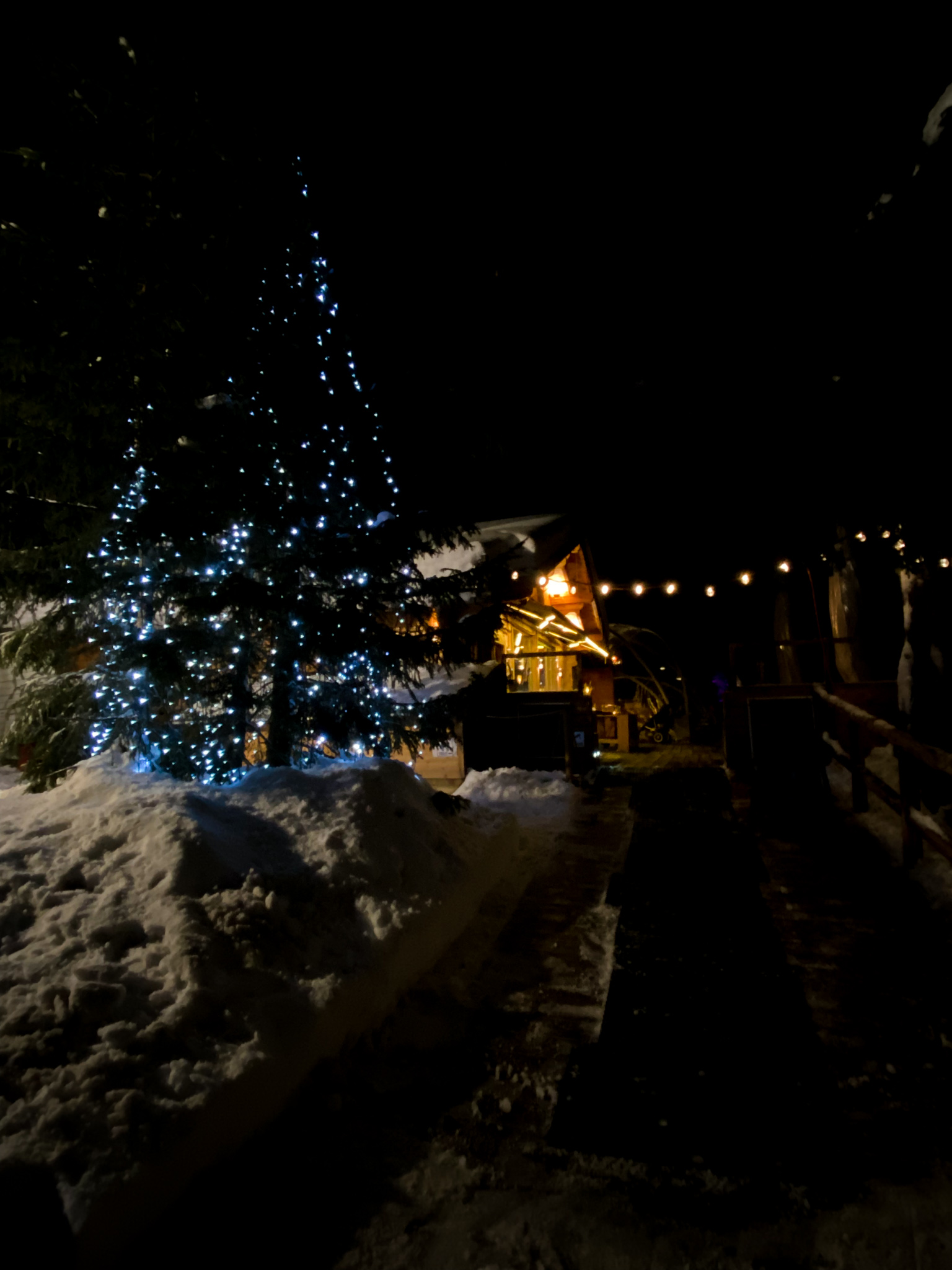 The last Christmassy stop was in the fancy ski resort town Crans-Montana. There wasn’t a Christmas Market there which was a bit disappointing. Still, there was a Lantern Path with lovely light installations. These reflected in the snow, which made the experience even more special, even though I was constantly afraid of slipping on the ice and falling down (bringing my warm glass of mulled wine with me…).