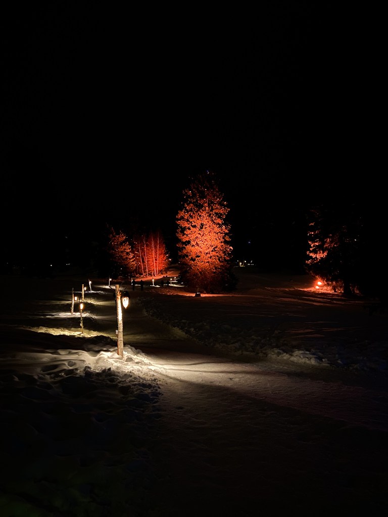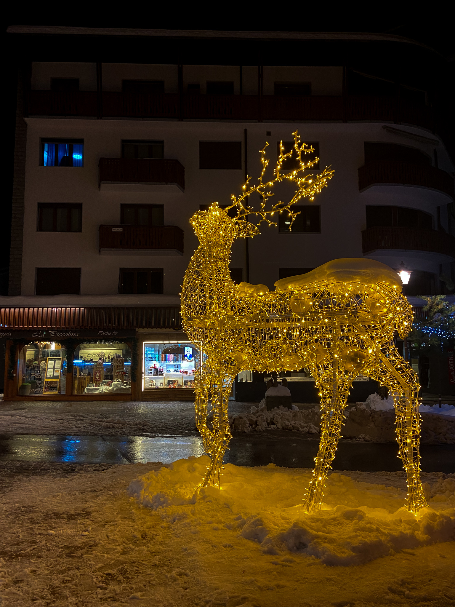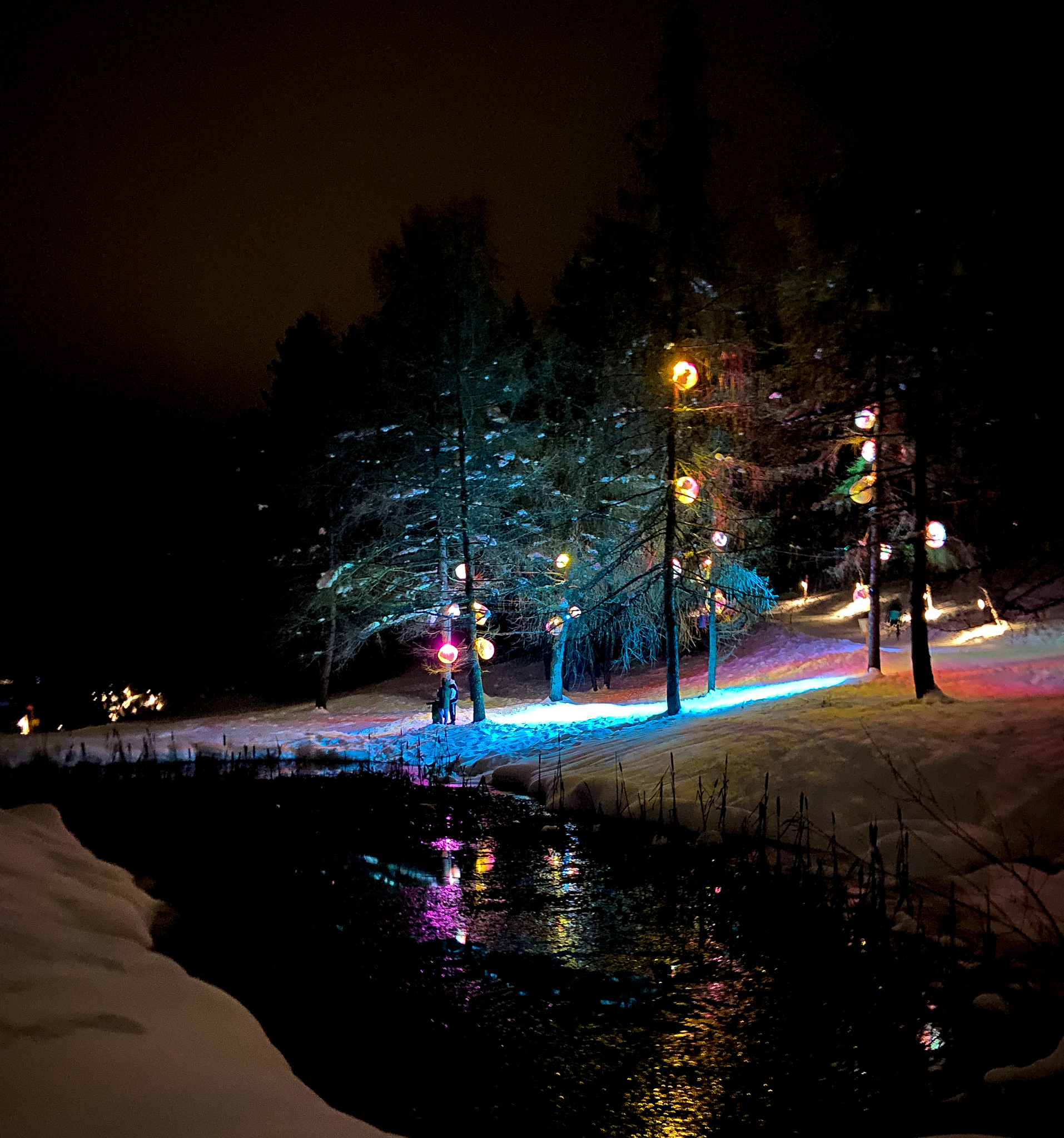 The last Christmassy stop was in the fancy ski resort town Crans-Montana. There wasn’t a Christmas Market there which was a bit disappointing. Still, there was a Lantern Path with lovely light installations. These reflected in the snow, which made the experience even more special, even though I was constantly afraid of slipping on the ice and falling down (bringing my warm glass of mulled wine with me…).