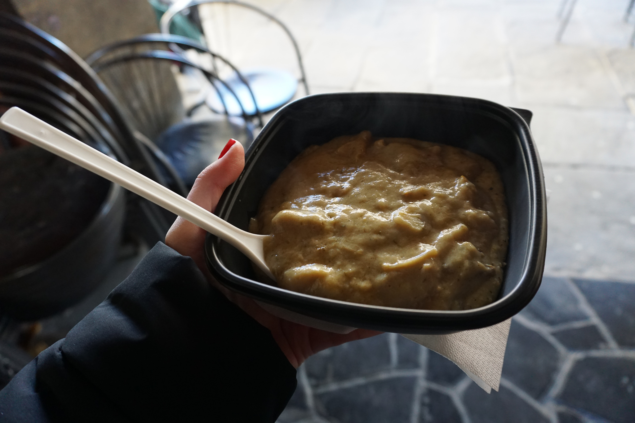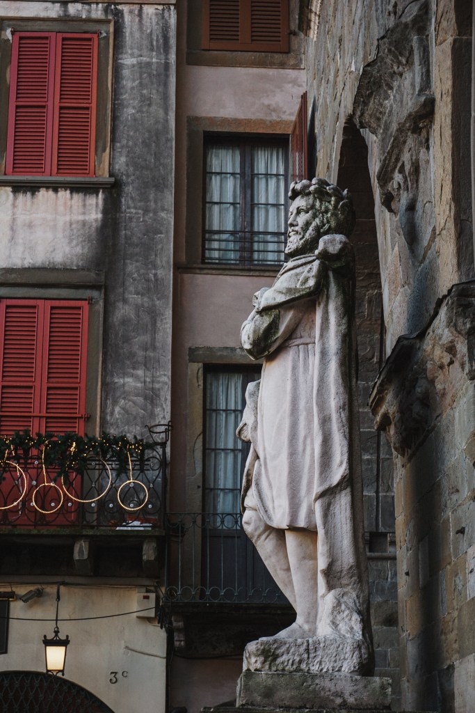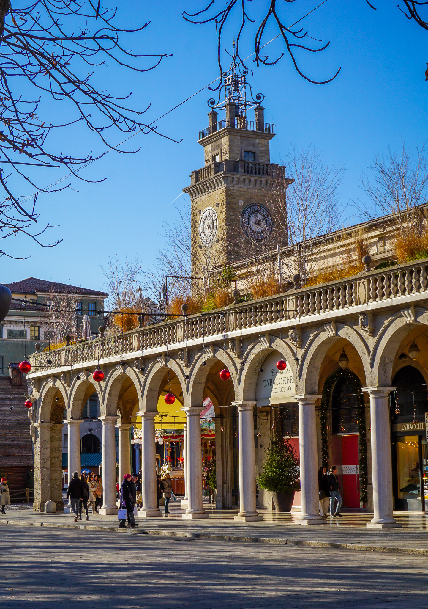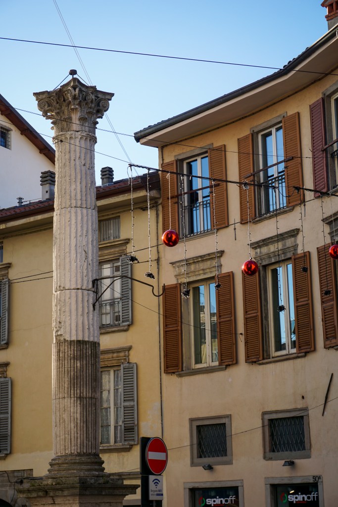 The town was particularly charming when I visited, decorated for Christmas, with all bakeries showcasing candy, cakes, pastries and chocolates for the season. Most tourists were clearly domestic or locals who were enjoying the Christmas entertainment here and there. I was quite tempted to sit at a restaurant in the Città Alta, but it was a Sunday and I quickly realized that not only were the prices a little steep for dishes that I wasn’t sure I’d enjoy, but also the restaurants seemed to be full with families and big groups of friends. This was the weekend before Christmas, so everything was quite busy! I decided to collect some traditional Polenta from a street vendor, and sat outside by a beautiful historical fountain, enjoying the warm meal – I got the polenta with local cheese and mushroom sauce. It was delicious and very warm, ideal for the cold temperature, but I was quickly very full!