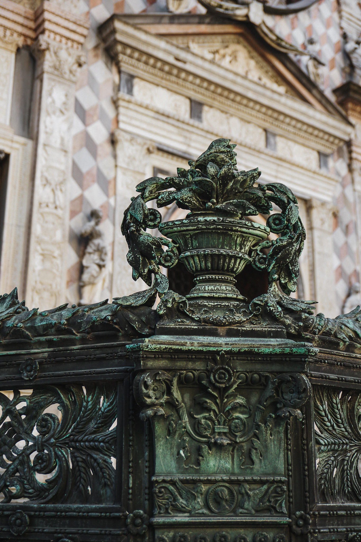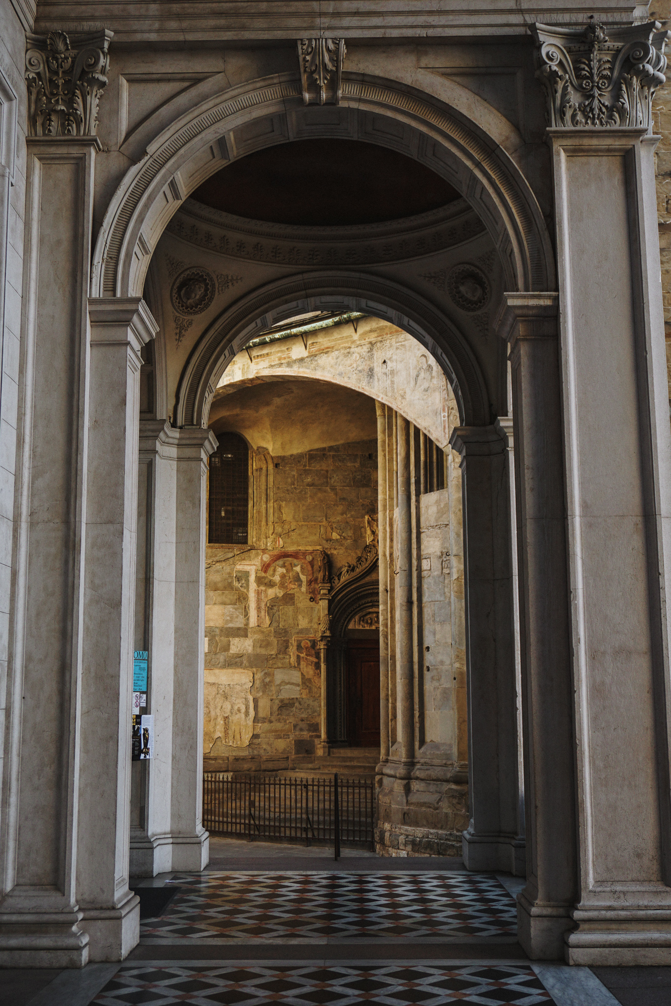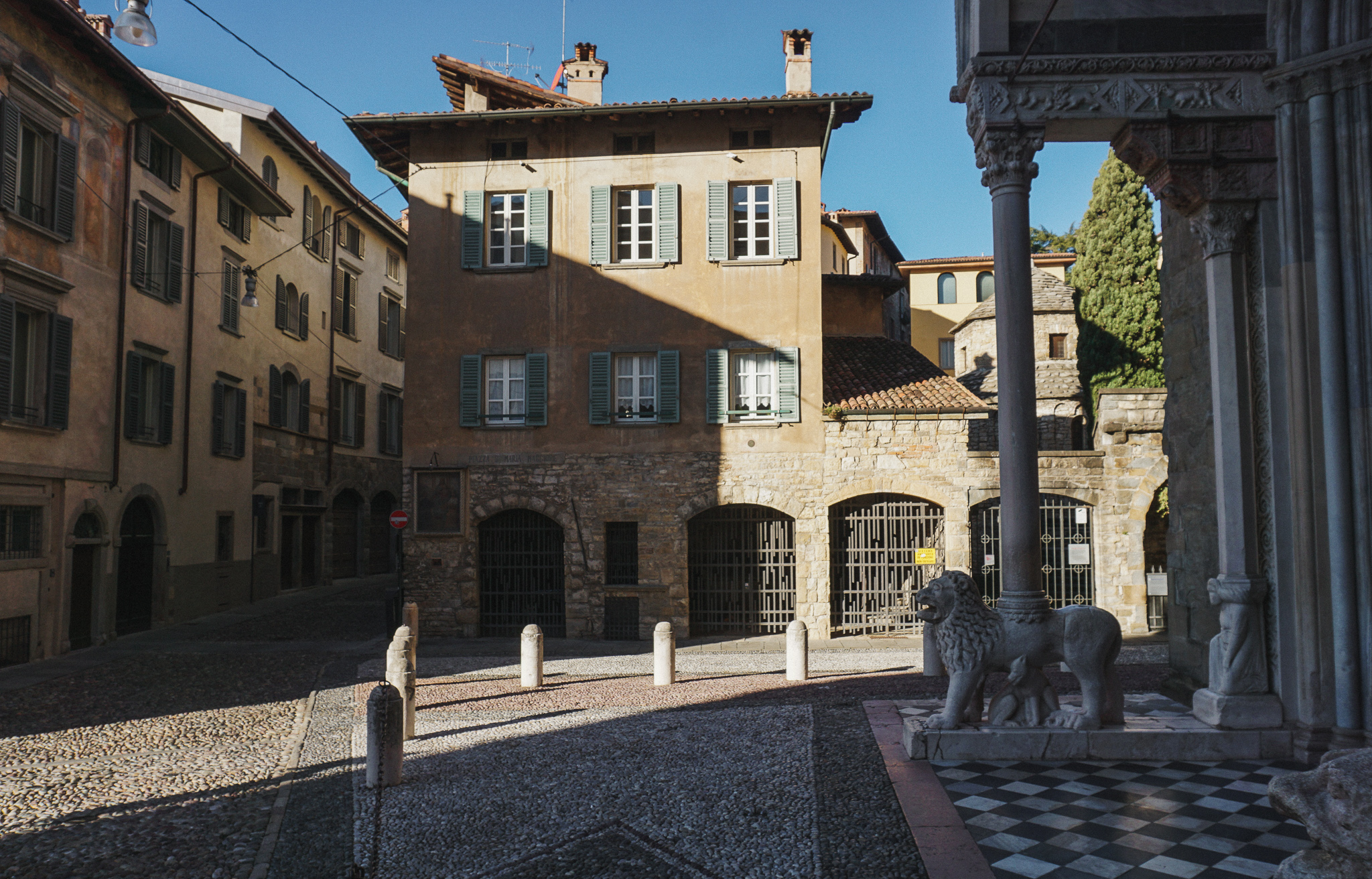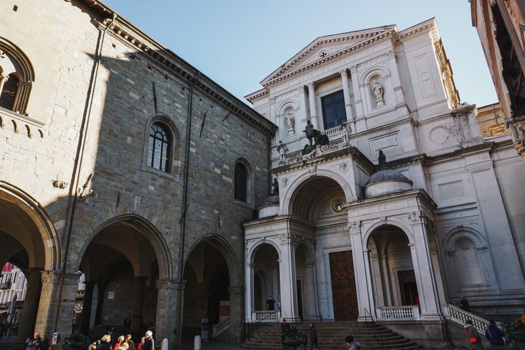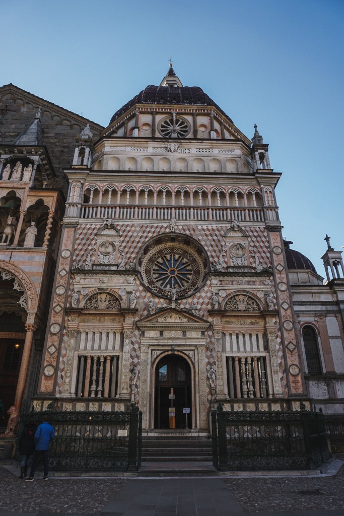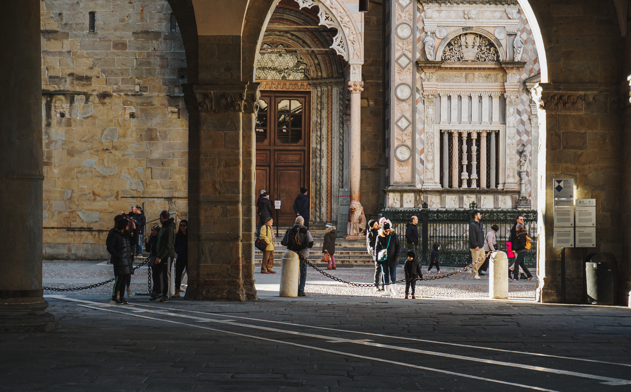 In the Città Alta, you will immediately notice when you do get to the main points of interest – not only because of the crowds but also because all of them are distinct – the Piazza Mercato delle Scarpe, this is where the main commercial street begins (or ends depending on the direction) but also the point of entry in the Città Alta for many who decide to take the funicular, instead of climbing on foot. Then you have Piazza Vecchia, surrounded by cafes and restaurants, where you’ll be near the most famous attraction, the Basilica of Santa Maria Maggiore, a clear mark of Renaissance architecture in Bergamo.