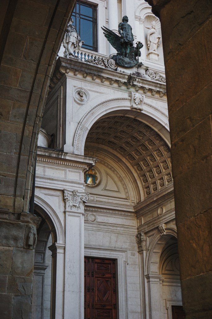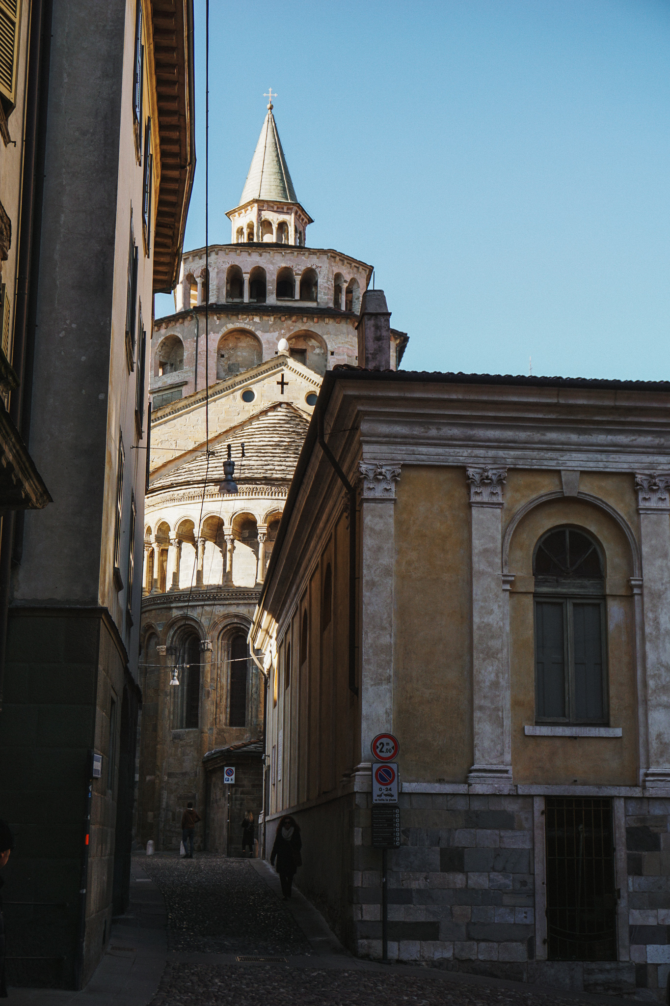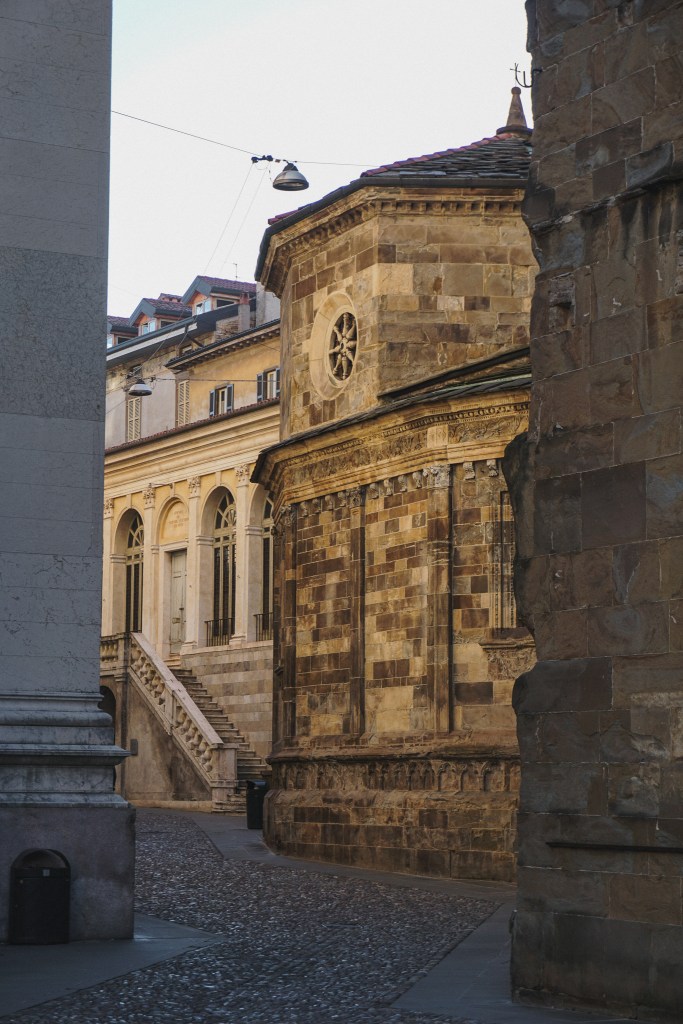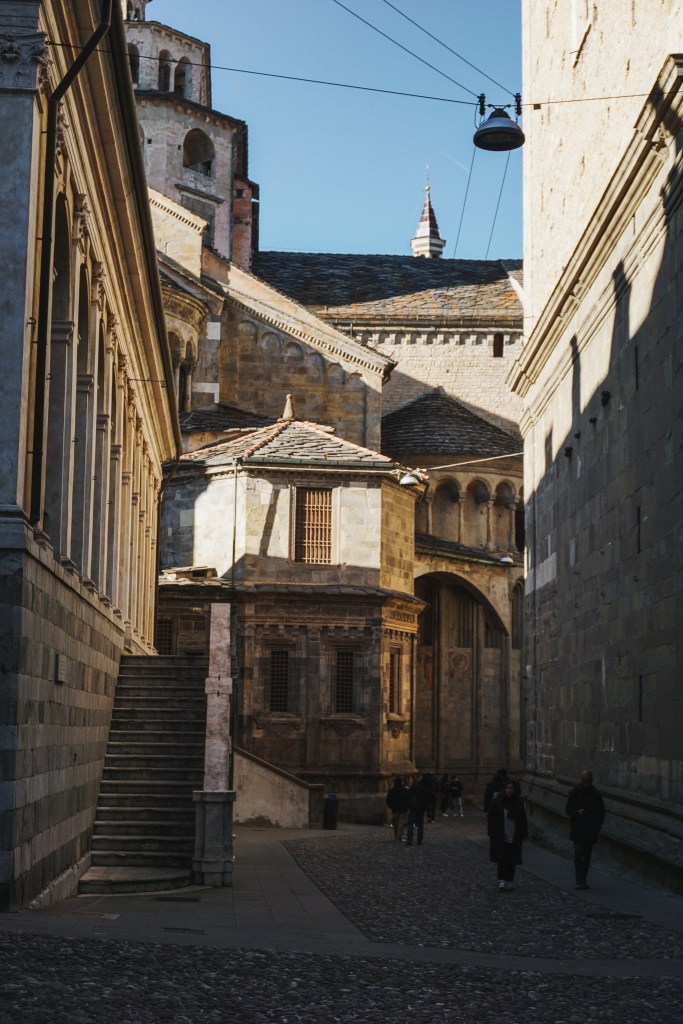 Surrounded by Venetian walls, the Città Alta is the biggest attraction of Bergamo. Seen in the distance, it is a sight in itself, a conglomerate of imposing medieval structures, surrounded by powerful defensive walls. The sun seems to always bless the place from multiple angles. From inside, you are granted views of the mountains and the lower city. You get to walk on cobblestone streets, with little shops, restaurants and patisseries. I’d say the best way to explore it is to simply let yourself get lost in it, but it’s quite hard to be lost in such a small place, where all the alleys seem to eventually take you in circles or down, back to the lower city.
