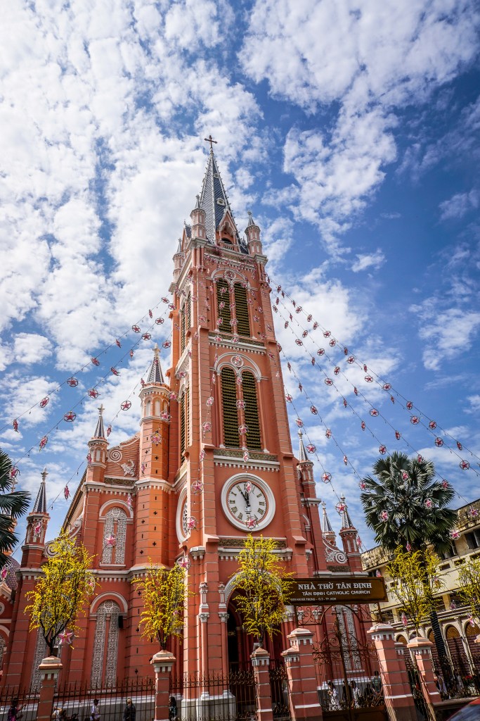Another great spot for photography lovers is a very unique attraction in Ho Chi Minh City – a Pink Church! A place with Barbieland vibes. Its formal name is Church of the Sacred Heart of Jesus, in Vietnamese it goes by the name Tân Định. It’s located a bit farther out of the centre, in District 3, but worth the walk. It is the second biggest church in the city after Notre Dame, and it was built in the 1870s during French colonialism. Unfortunately, at the time of my visit, the doors were closed and I couldn’t visit the inside. It is simply a stunning, beautiful landmark of the city. I was lucky that it was sunny, and the blue sky was punctuated with some clouds, making it perfect for some nice shots.