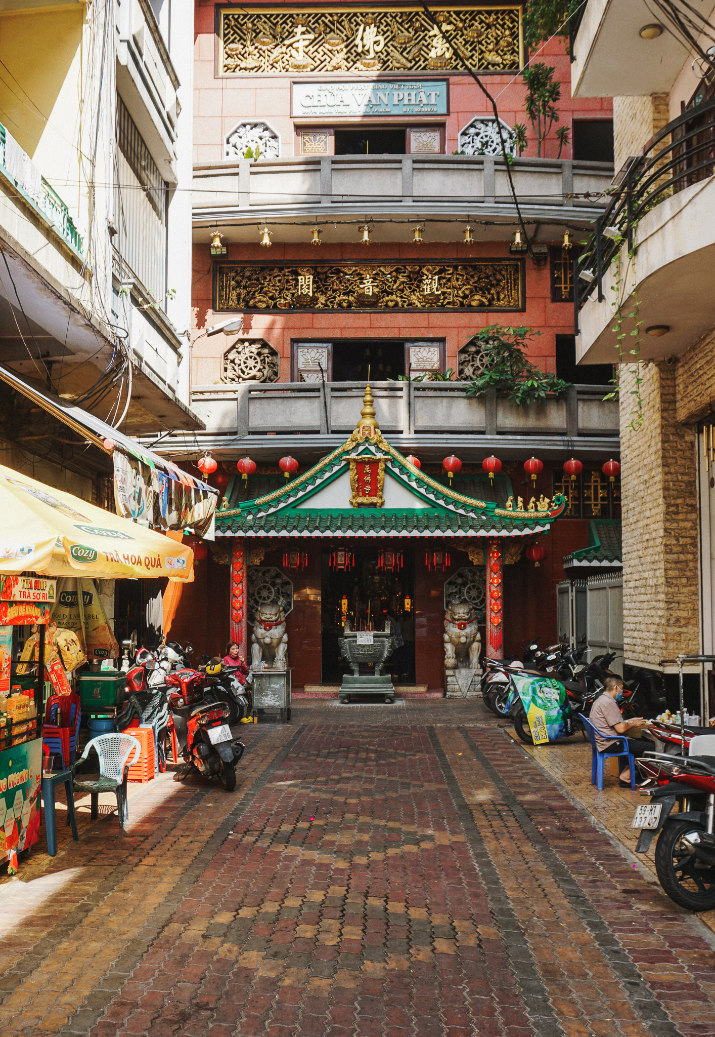 What a start to your trip. The cafe apartment is such a good idea to use the space- I love the photo of the 2 women with the plants at the window. With its French colonial past- it makes sense that there would be churches (and a Notre Dame) but some reason, it still caught me off guard. The Ten Thousand Buddha Pagoda located in what looks to be like a back street looks like a special find in the bustling city.