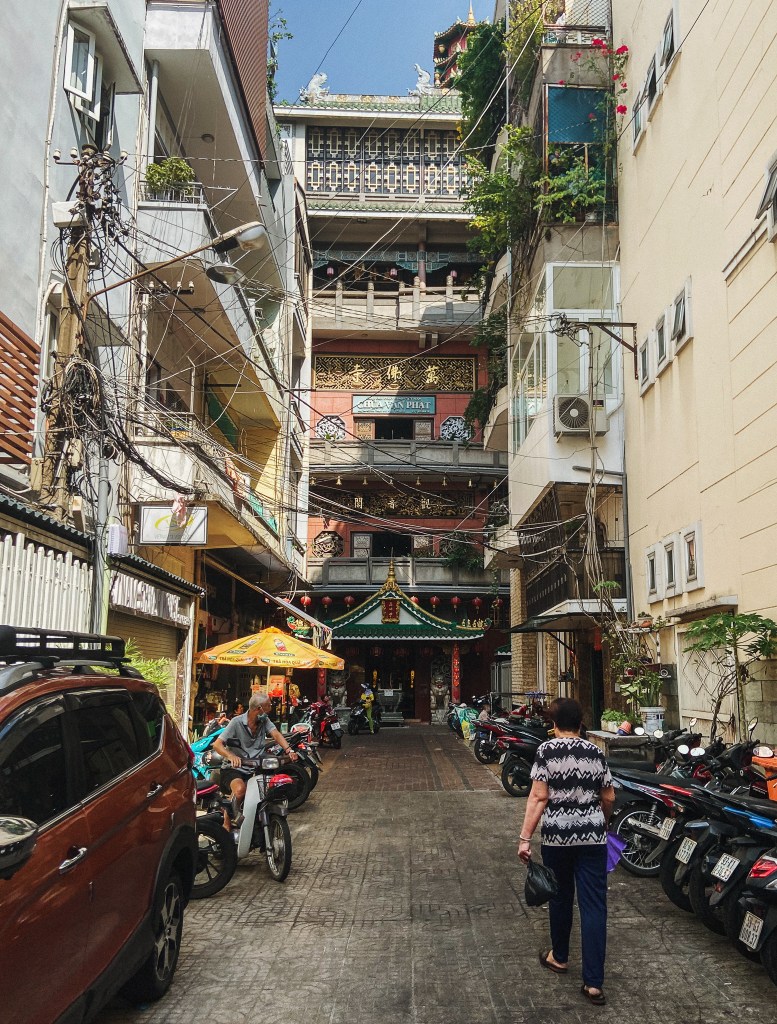 On my last day in Ho Chi Minh City I decided to visit a place that is off the beaten path but had been recommended by the guide on the walking tour I had done on my first day there. The Ten Thousand Buddha Pagoda. It meant a 40-minute walk from my hotel, but I had nothing else to do that day, so I set off for the walk. What I had forgotten to remind myself of is that cities in Vietnam are just not walkable at all. Yes, there are sidewalks. But mostly these are occupied by parked motorcycles or even tables and chairs from cafes and restaurants. They are also not well kept, so if you’re not careful, you may fall into a random hole or trip on loose stones. Sidewalks can easily become roads as well. Mopeds would simply use them if there is too much traffic and not any space for them on the actual road. It’s truly a concrete jungle over there… !
