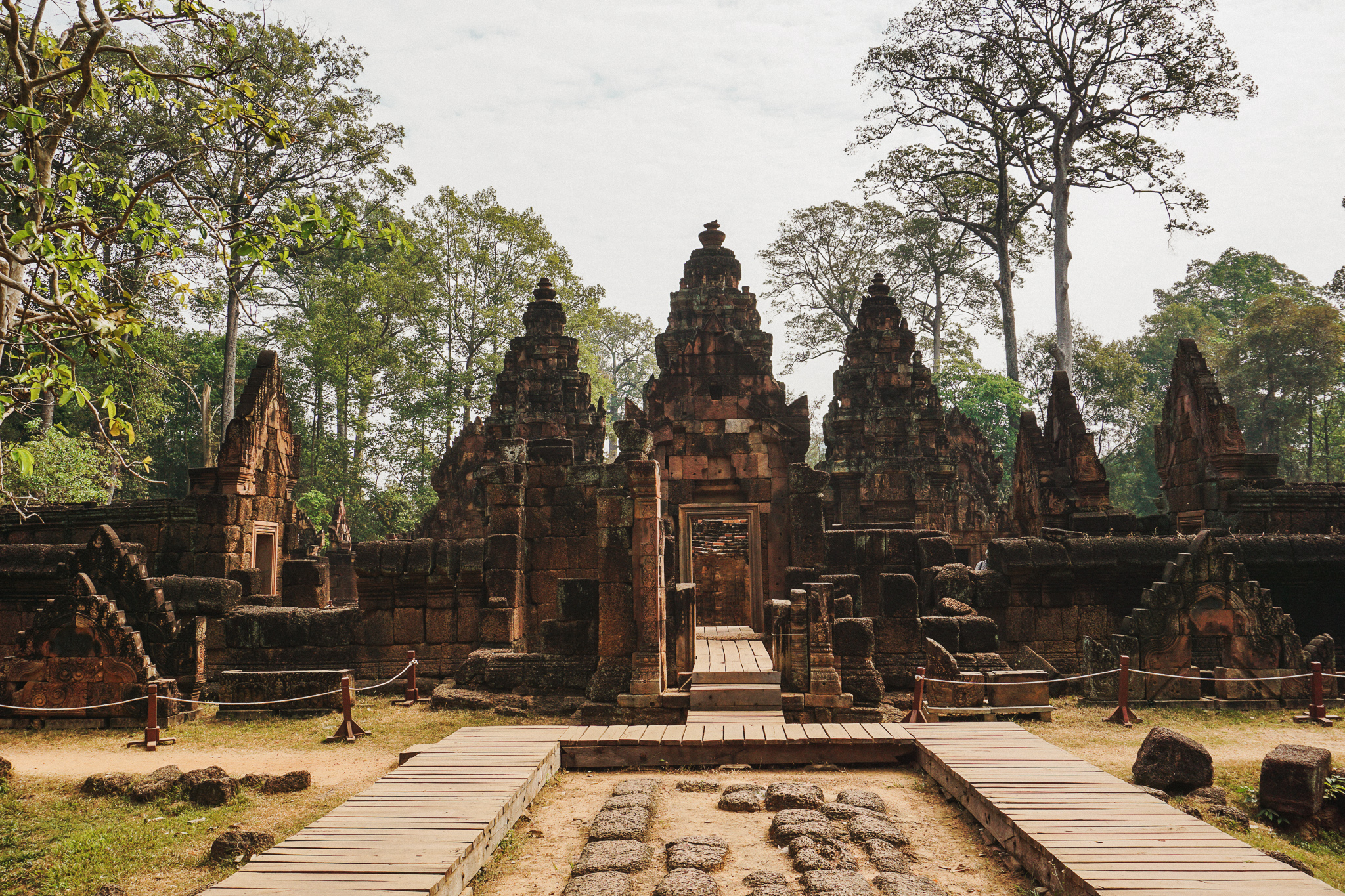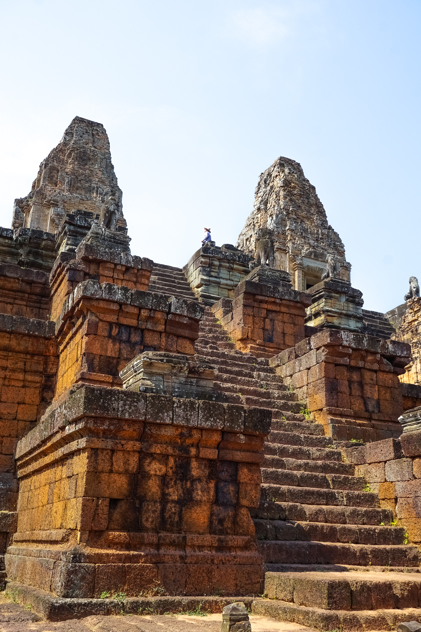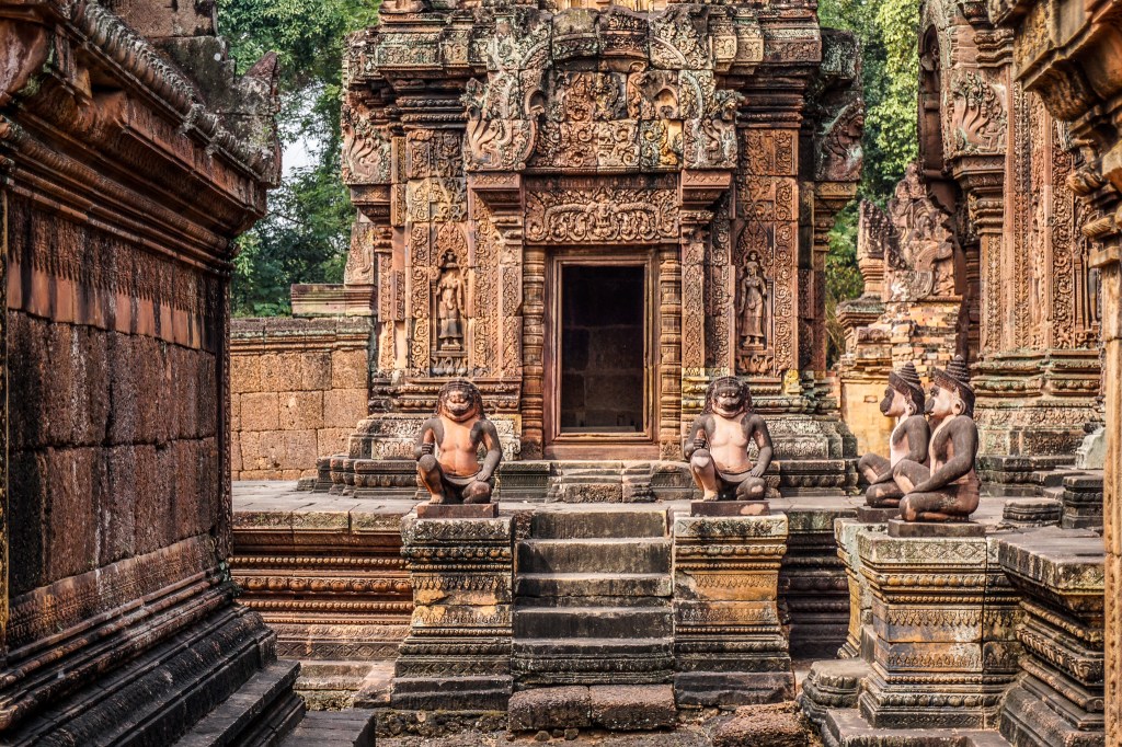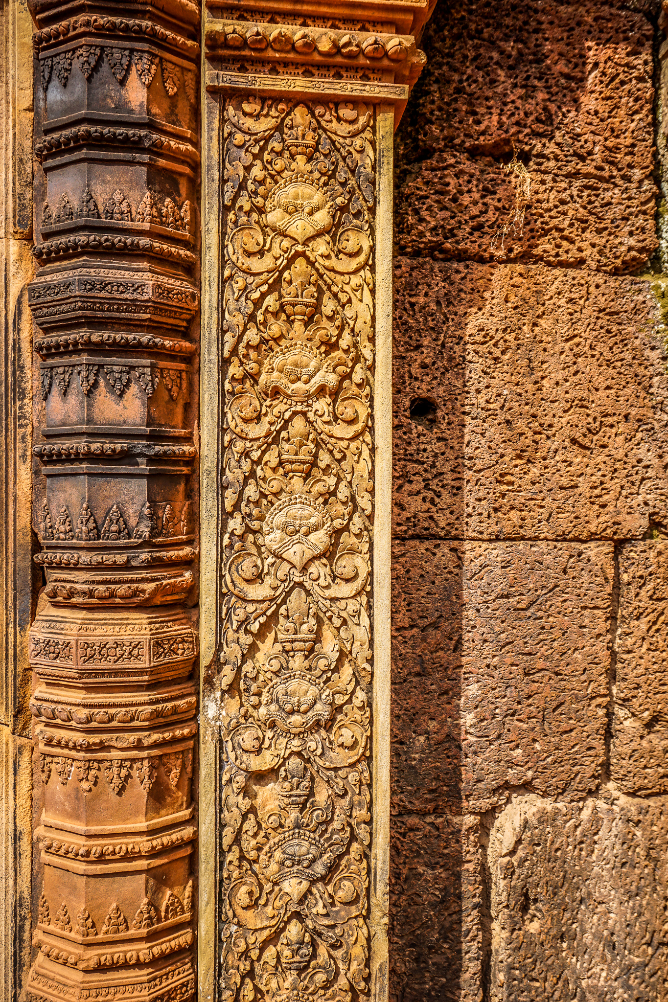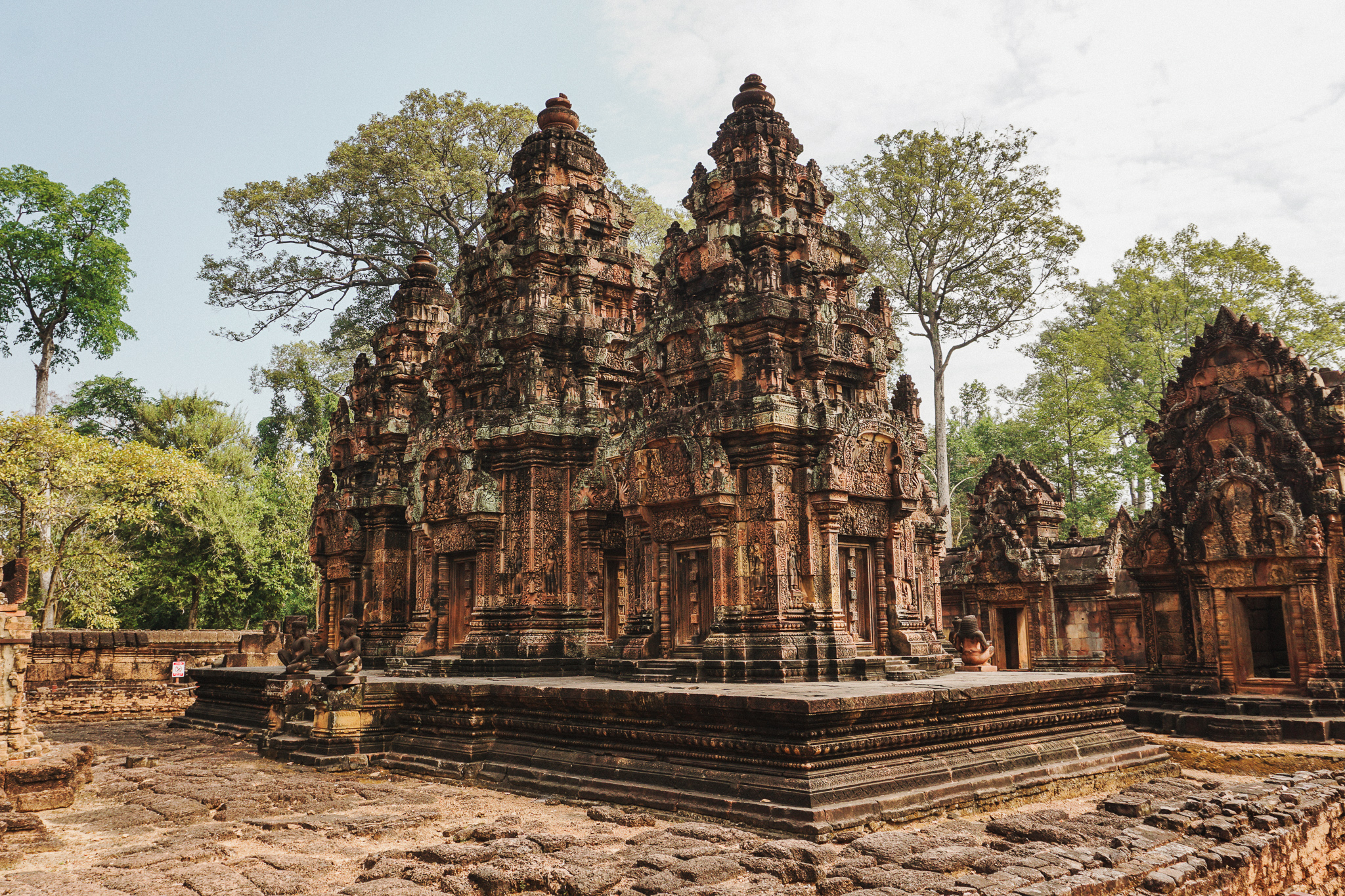 Let’s talk a little about the temples of this second visit. The main attraction on this second day was the Banteay Srei Temple, which means Citadel of the Women. The name comes from its delicate carvings, which some have conjectured could have not been made by the hands of the men, as they are so delicate…which is of course a very weak argument that makes no sense. It is also known as the Pink Temple as its stone has a pinkish hue. This temple is dedicated to Shiva, and whilst it’s much smaller than its counterparts, it is incredibly well preserved, and its carvings are indeed beautifully made, making it a must-visit, if you can spare the time. Thank you Nature, for being good here!