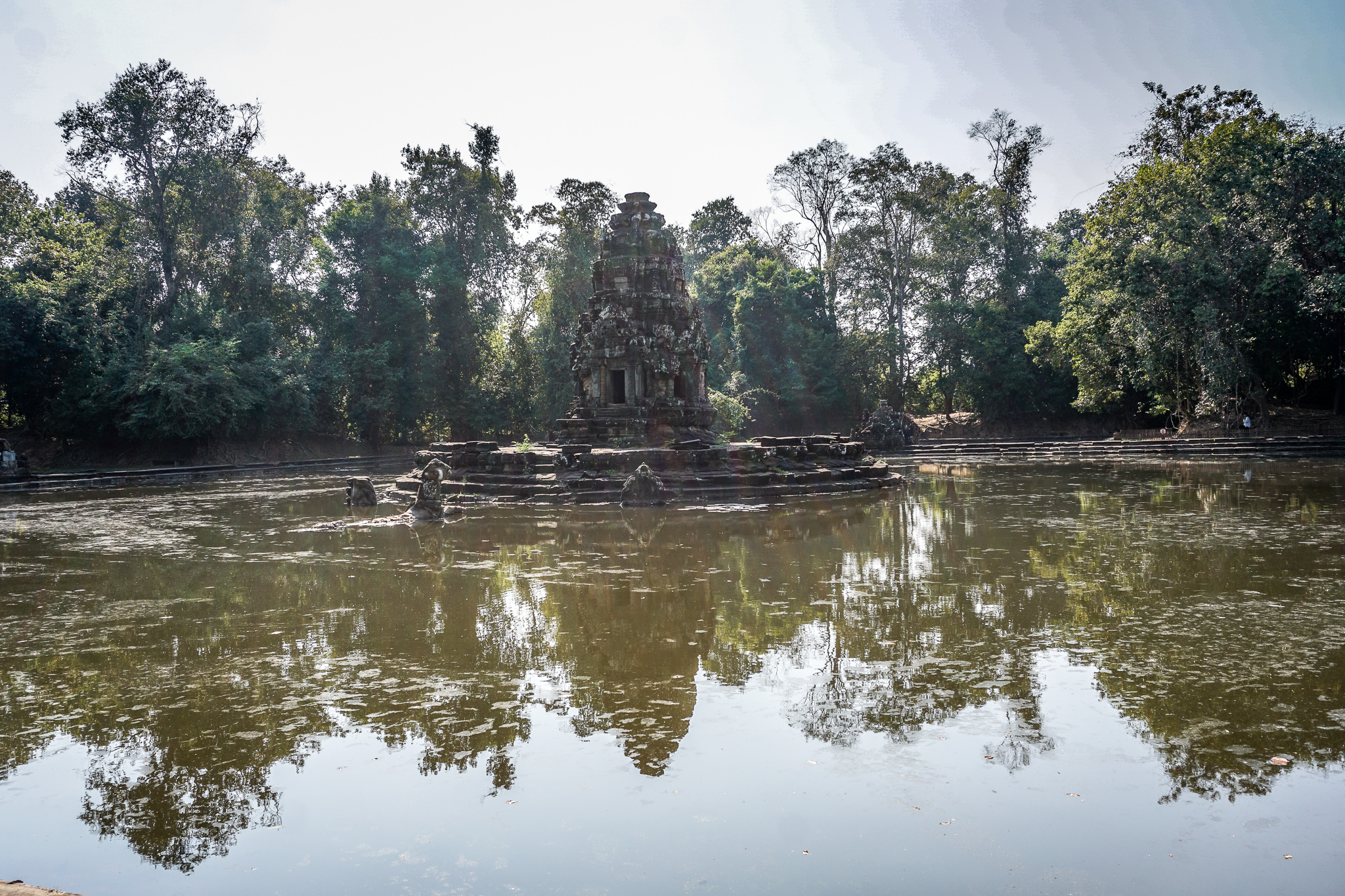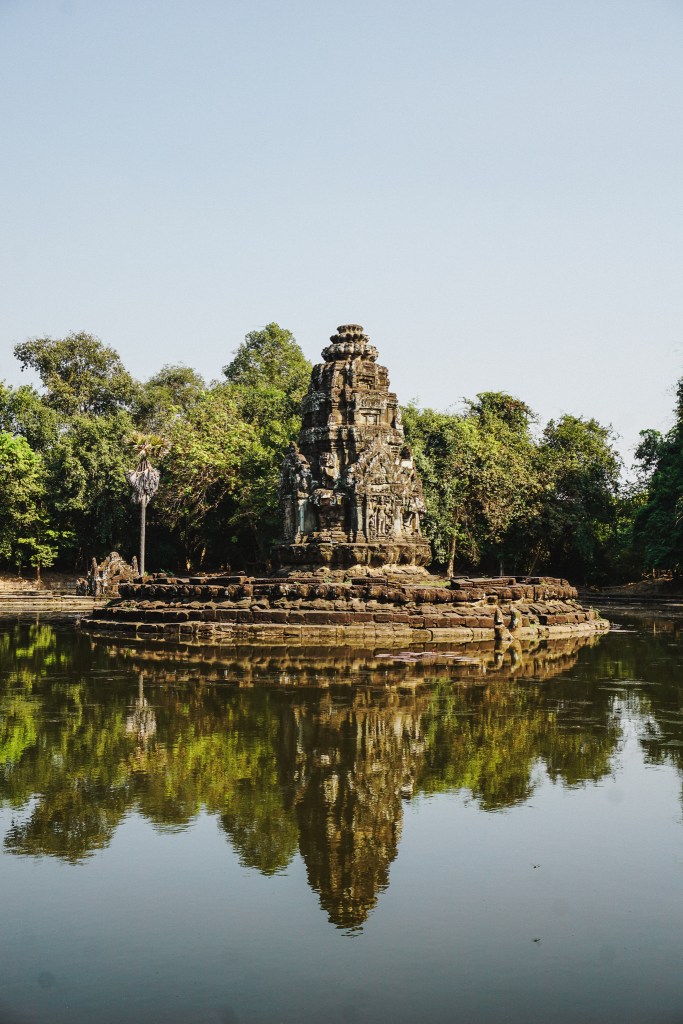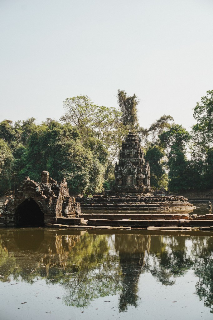 While this temple is incredible, we visited another one that ended up being among my favourites too. A temple located on an artificial island called Neak Pean . This temple was designed for medical purposes, as the ancients believed in the healing power of those waters. It was a sort of hospital in those days, but with what we’d call alternative medicine practices. There are four different connected pools, with each one of them representing different elements – Fire, Wind, Water and Earth. This is one of those places that makes you believe in the supernatural powers of Nature too. It is just incredible, even though quite a few parts of the temple have been destroyed by the actual elements of Nature, with carvings having faded away.
