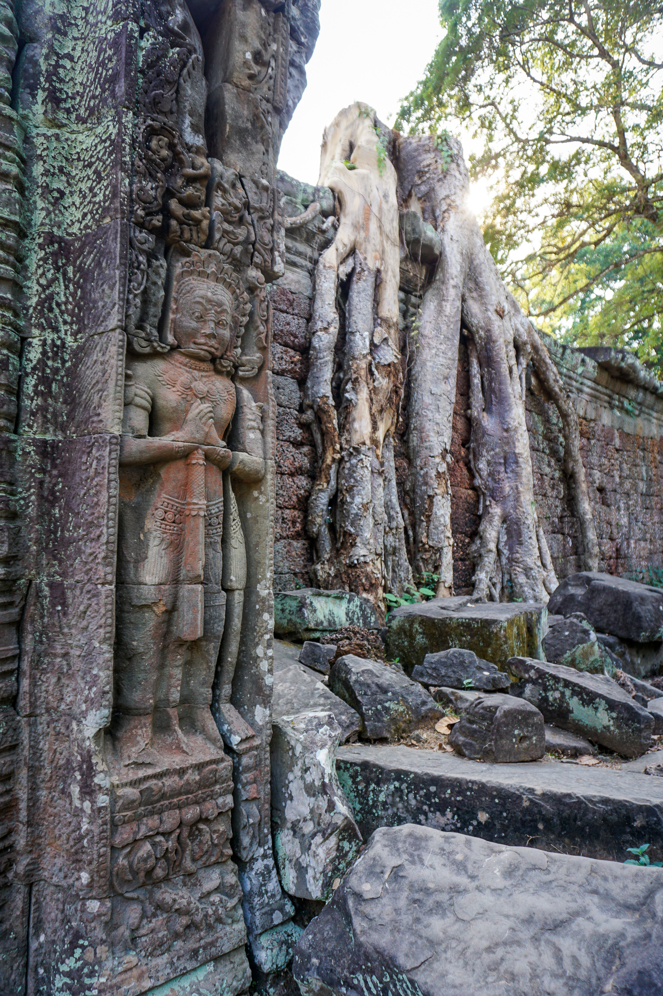 One of the reasons why so many of these temples fell into such terrible disrepair was of course the Khmer Rouge. Not necessarily because they actively destroyed it, but because during these years any restoration efforts were simply halted, putting into jeopardy decades of work. This was a period of four years (1975-1979), which may not seem like a lot in the great scheme of things – but we’re talking about structures with hundreds of years, in a tropical jungle, where heavy rains and high temperatures not only create pressures and erosion in the stones, but Nature does seriously take over, growing at a much faster (and strong) rates than on any other place on earth with a more moderate climate.