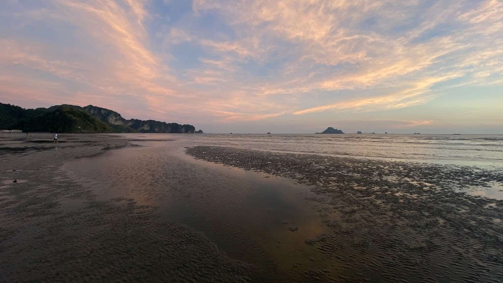 Whilst some travellers told me they found Krabi too busy, I absolutely loved it. Firstly, I felt a lot more at ease as a solo traveller, as I could see so many others around me. I loved the long and wide beaches, the amazing night market, the sunsets, and the tiny marine life the ocean would leave temporarily homeless in the sand when the tide lowered. The locals arrive at sunset when the temperatures are bearable and the sun gives away its power to the moon. Families walking leisurely on the beach, children running around, splashing in the little salty puddles, picking up shells and stones, a treasure hunt pretend.