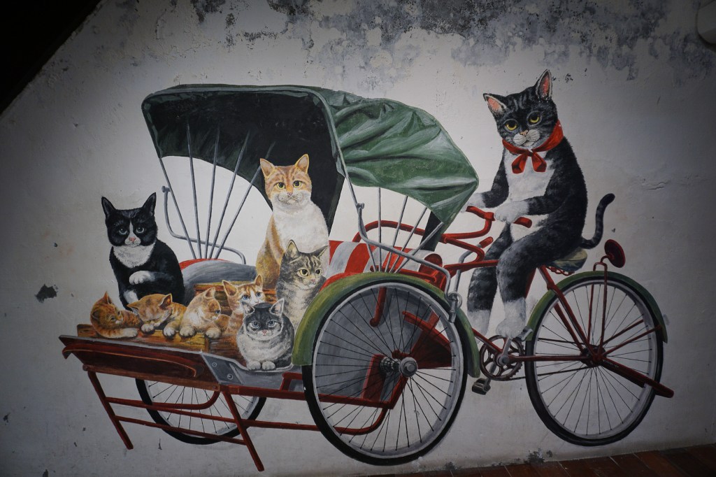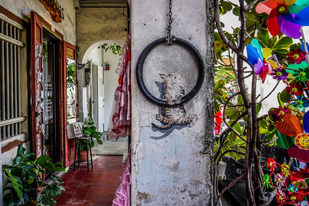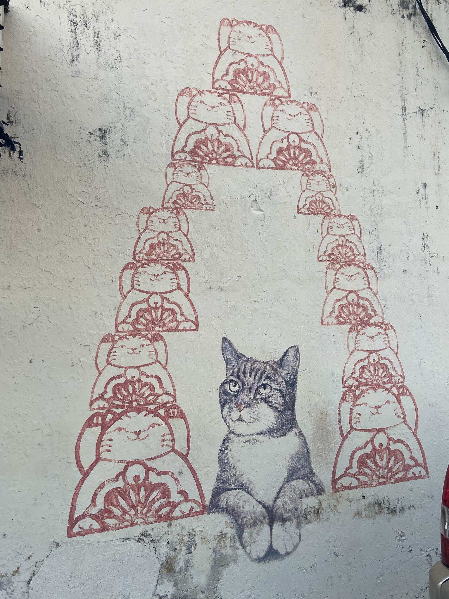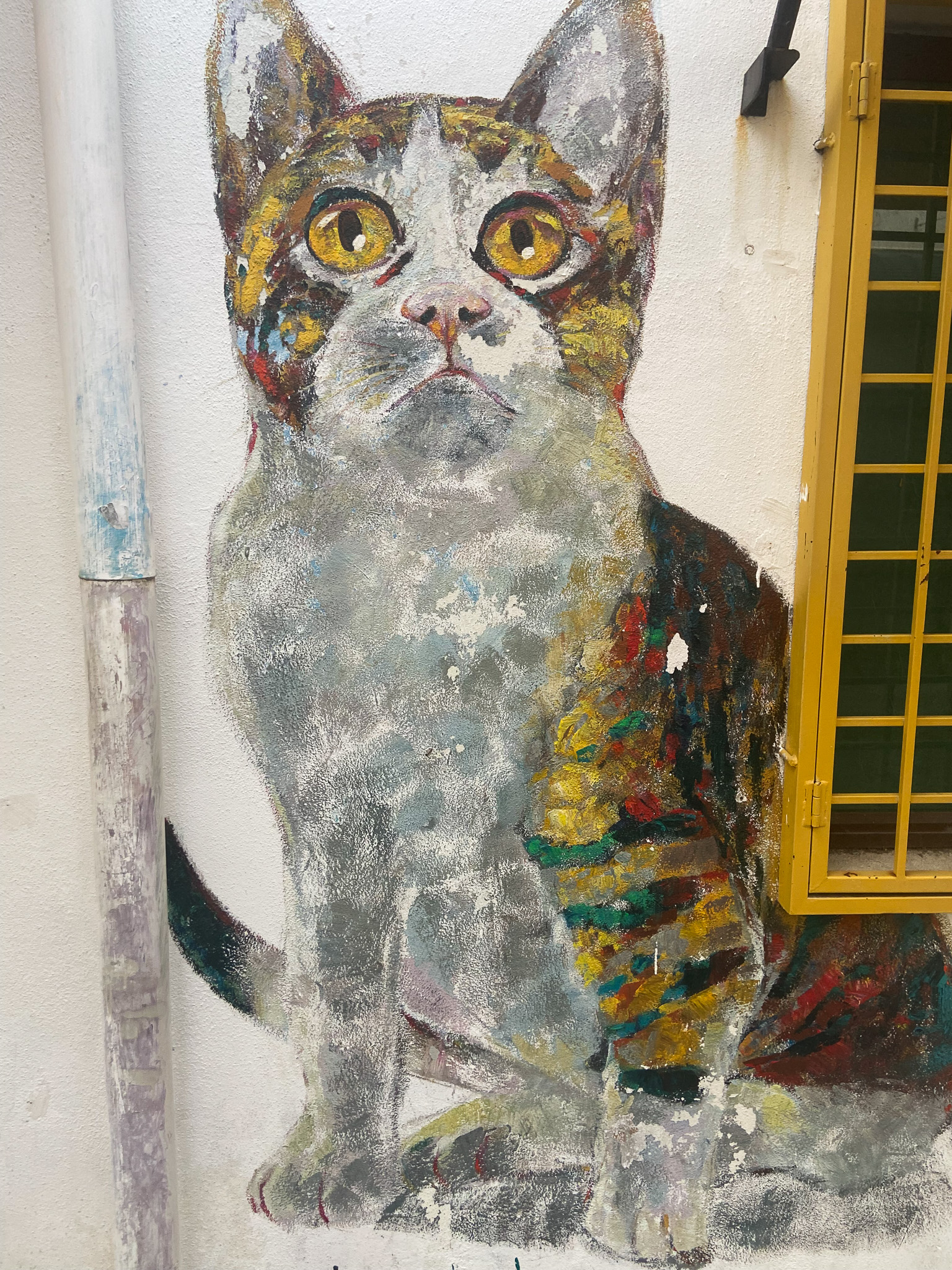 As a wannabe cat lady myself, I immediately noticed Georgetown (like many port towns) is full of these little felines. Nothing in comparison to Istanbul or Dubrovnik, but still… and there is plenty of street art inspired by cats. I also came across a shop that was fully dedicated to cats. I first spotted the street art and then the lady came to the door calling me inside. “You like cats? Come, come, there are many more inside!”. She is a collector, and inside I found glass cases full of all kinds of cat miniatures, and walls covered in cat murals – including Michael Jackson as a cat and the Marvel Avengers as cats as well. Real cats were around as well, including one sleeping in a sink, probably taking advantage of the cooler porcelain.