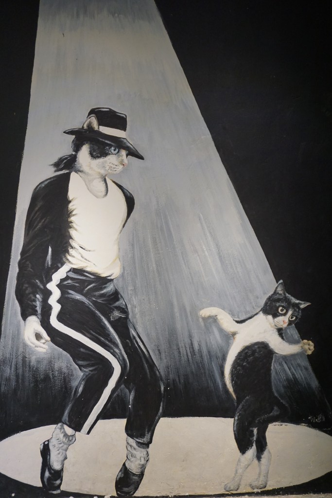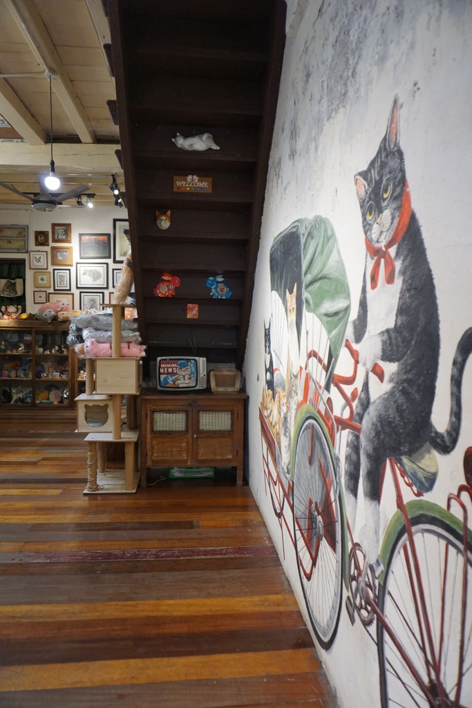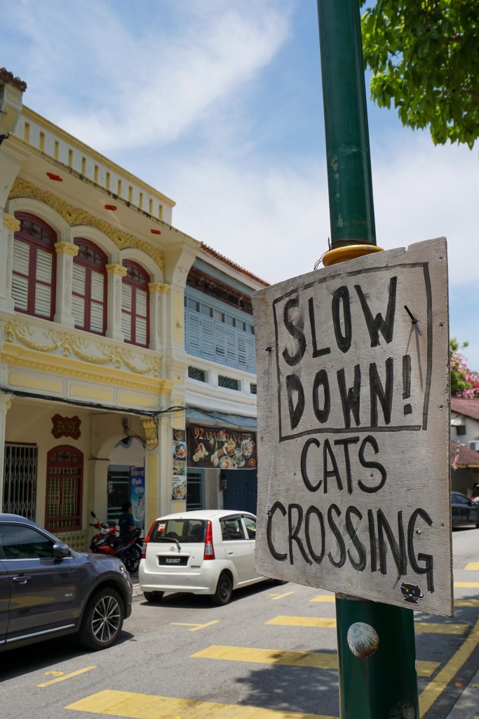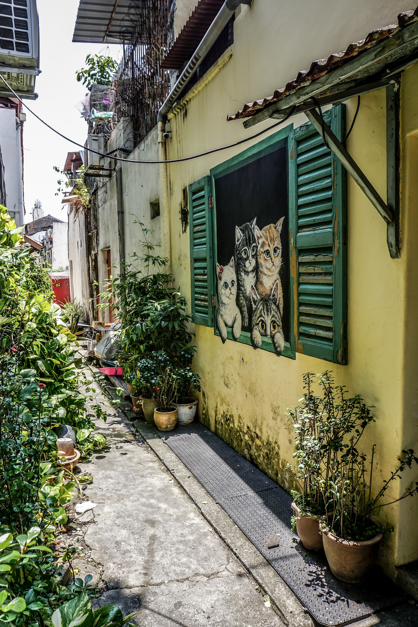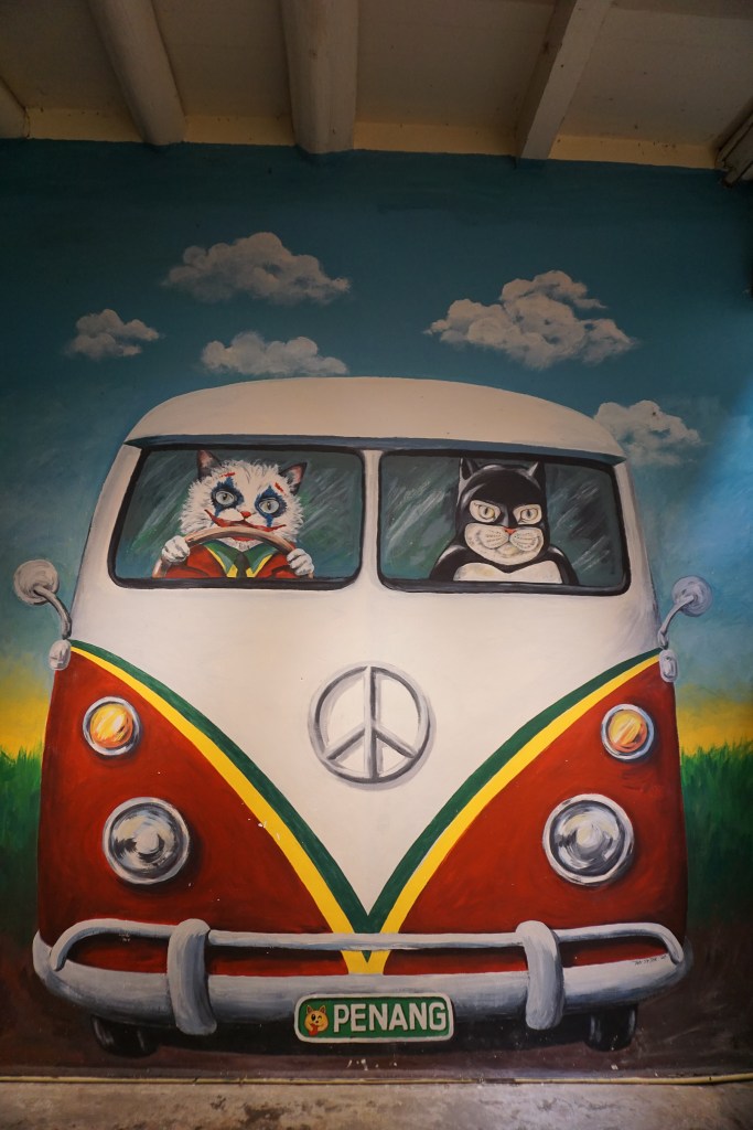 As a wannabe cat lady myself, I immediately noticed Georgetown (like many port towns) is full of these little felines. Nothing in comparison to Istanbul or Dubrovnik, but still… and there is plenty of street art inspired by cats. I also came across a shop that was fully dedicated to cats. I first spotted the street art and then the lady came to the door calling me inside. “You like cats? Come, come, there are many more inside!”. She is a collector, and inside I found glass cases full of all kinds of cat miniatures, and walls covered in cat murals – including Michael Jackson as a cat and the Marvel Avengers as cats as well. Real cats were around as well, including one sleeping in a sink, probably taking advantage of the cooler porcelain.