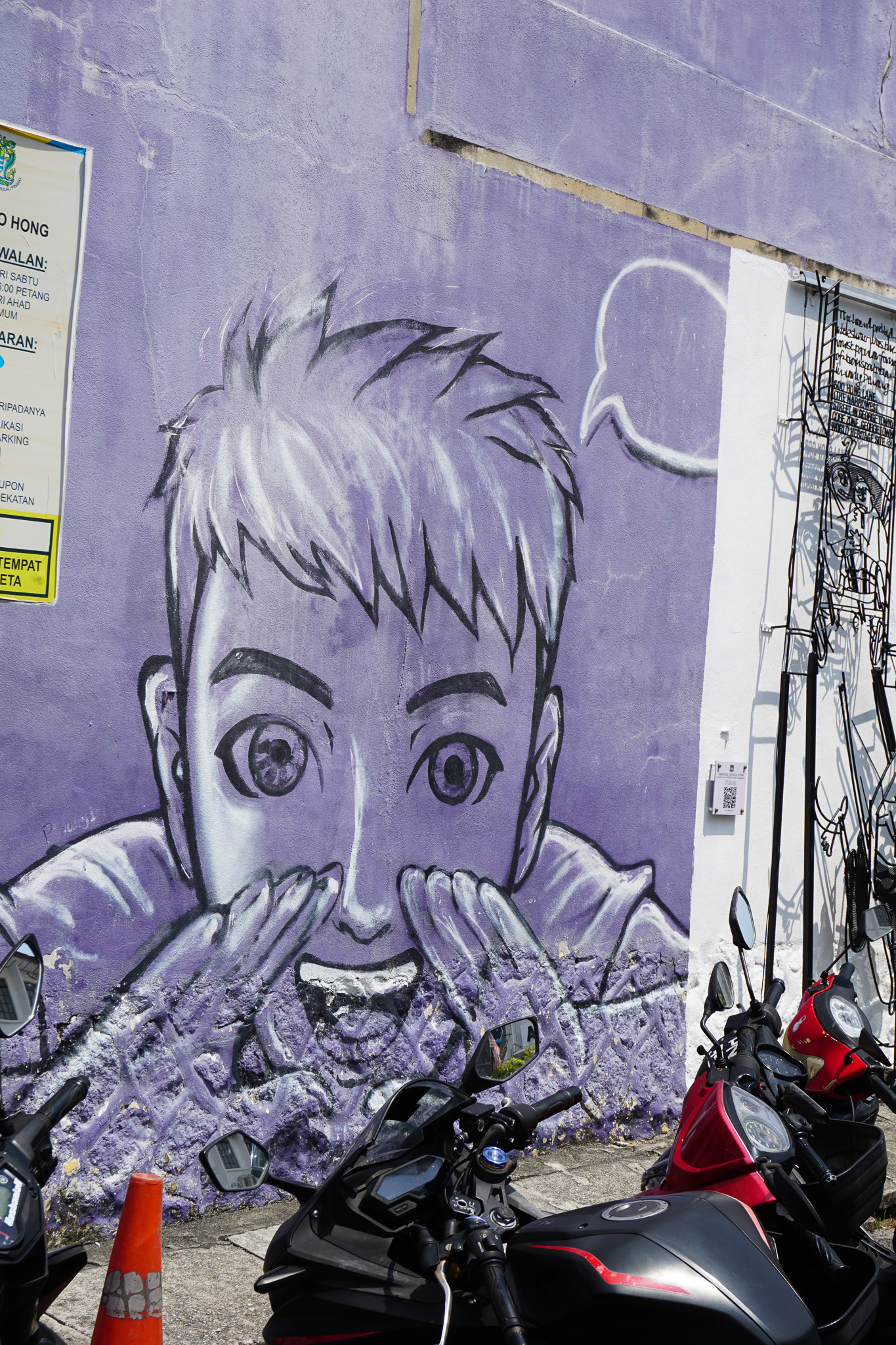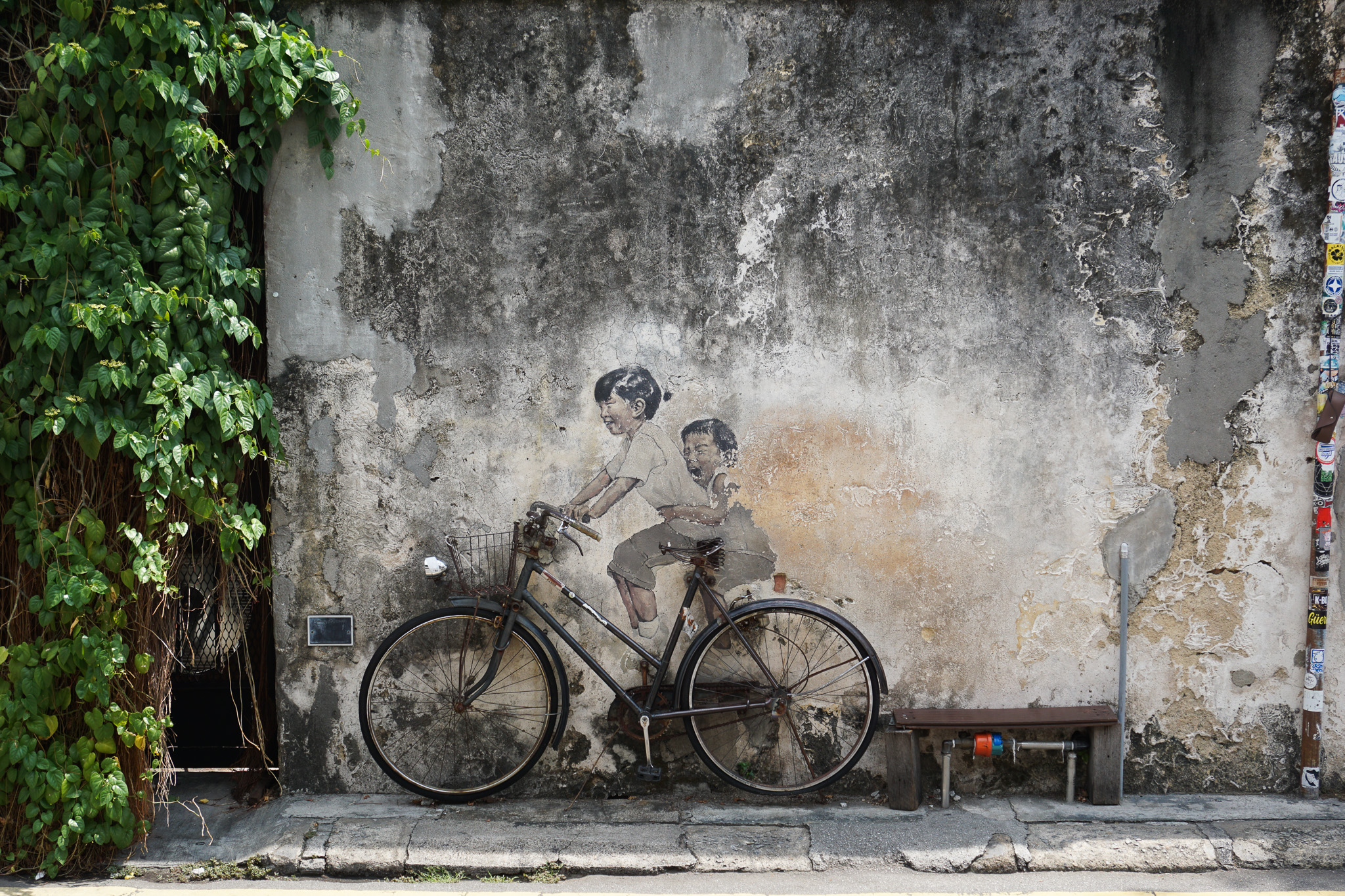 Sadly, a lot of these murals are fading. Being exposed to nature’s elements is the main cause, with Penang’s tropical weather accelerating its deterioration – intense sunlight, humidity and frequent rainfall. Penang is also an island, and Georgetown’s proximity to the sea means the concentration of salt in the air is higher. On top of that, the majority of these works were done on old walls with porous and uneven surfaces that don’t hold paint as well.
