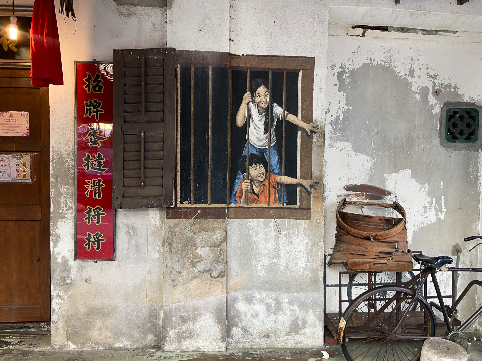 Besides being a paradise for foodies, Georgetown is in itself an outdoor art gallery. This all started in 2012, when Lithuanian artist Ernest Zacharevic was commissioned to create a series of murals as part of the Georgetown Festival. This was when he created some of the most famous works – “Boy on a Bike” and “Little Children on a Bicycle”. What makes these works extra special is that they combine real objects, making it interactive and fantastic photography spots.