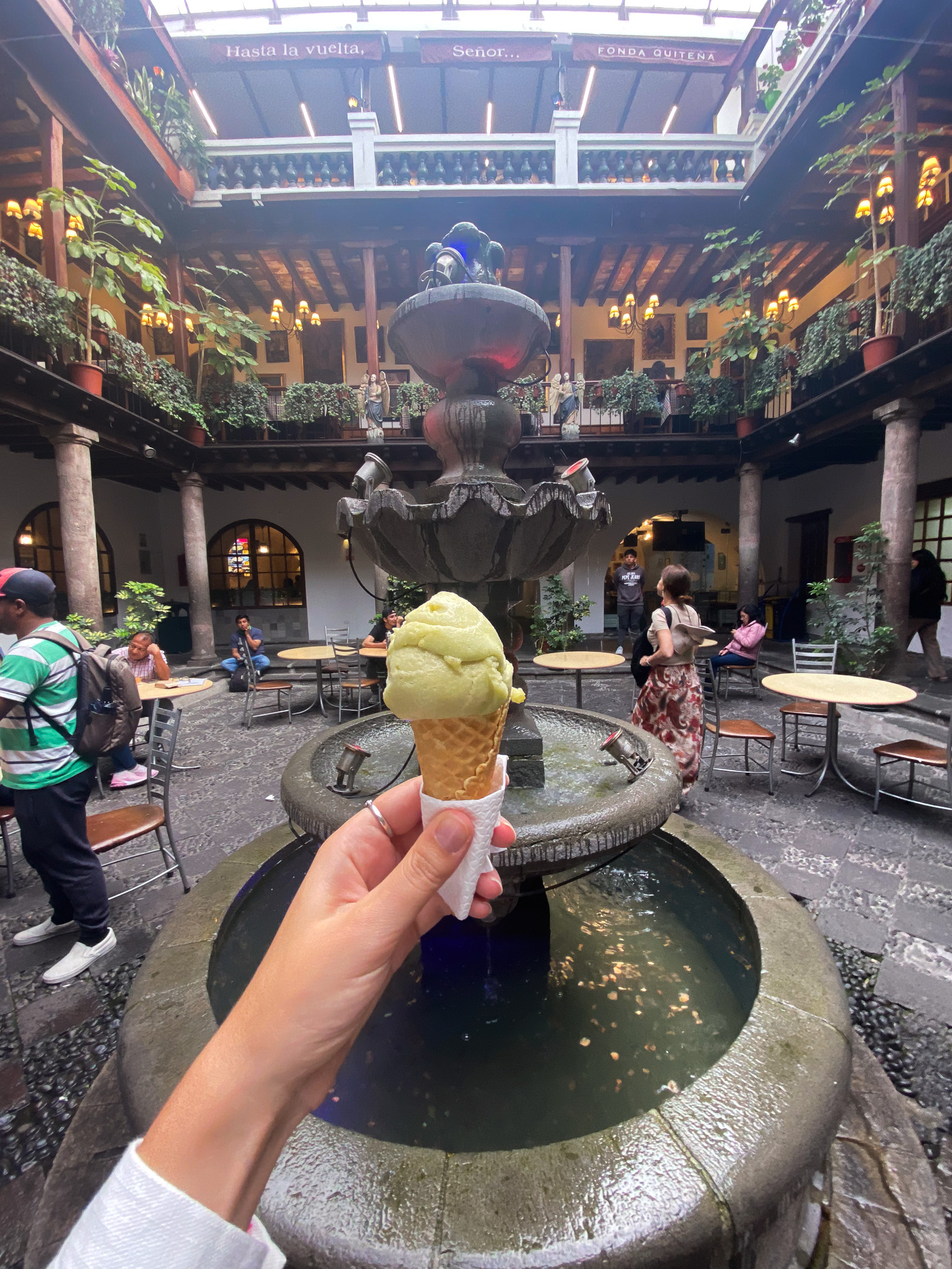 In case you don’t know, Guinea Pig is actually the big traditional dish of Ecuador. This was a no for me. I don’t even eat pork or beef, so this wasn’t something I was going to try. But not to worry… there are other things. Our guide took us to a place for ice cream where I tried Naranjilla ice cream. Naranjilla is a local fruit and it is delicious. this is a tropical fruit native to the Andes region and it looks like an orange, but I found the flavour of the ice cream to not be as acidic as it would be if it was in fact an orange – it was sweeter, definitely with a citric tone to it.