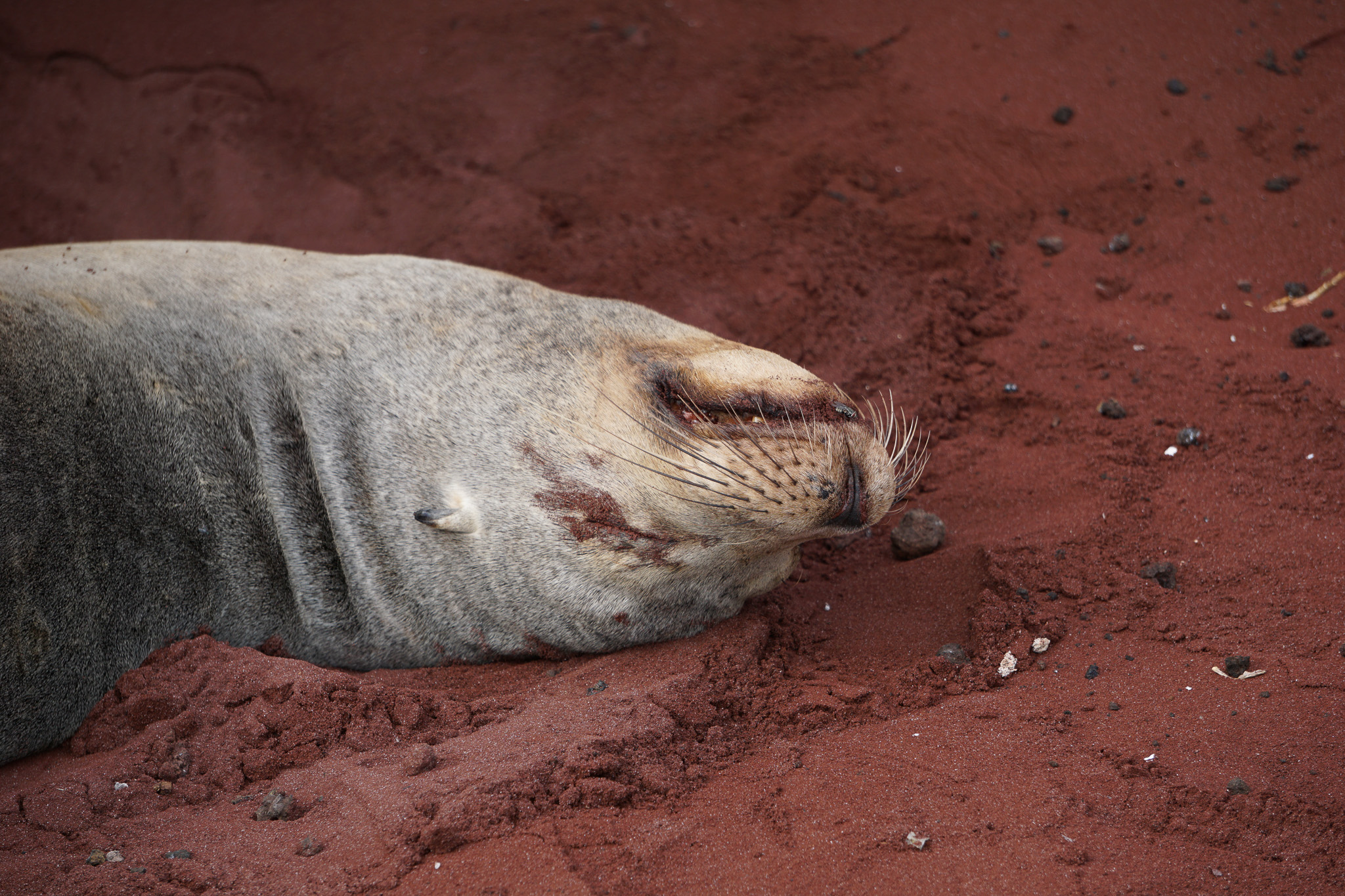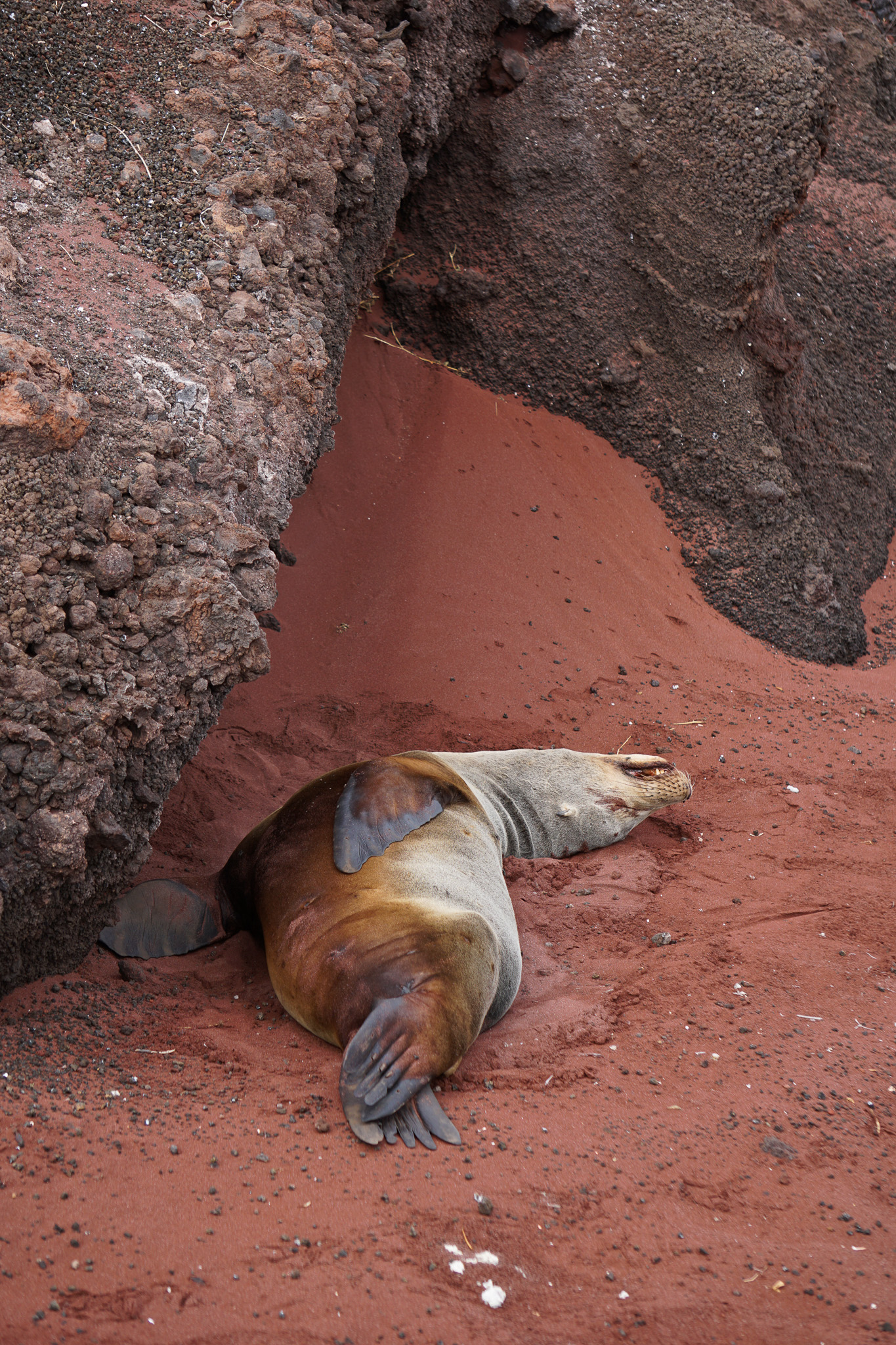 The red sand shores of Rabida make the small island unique not only geologically speaking but also in its beauty. The iron-rich lava deposits give the red colour of the sands. Once we landed, I saw some sea lions sleeping on the shores. I also spotted the Galapagos Mockingbird and lava lizards.