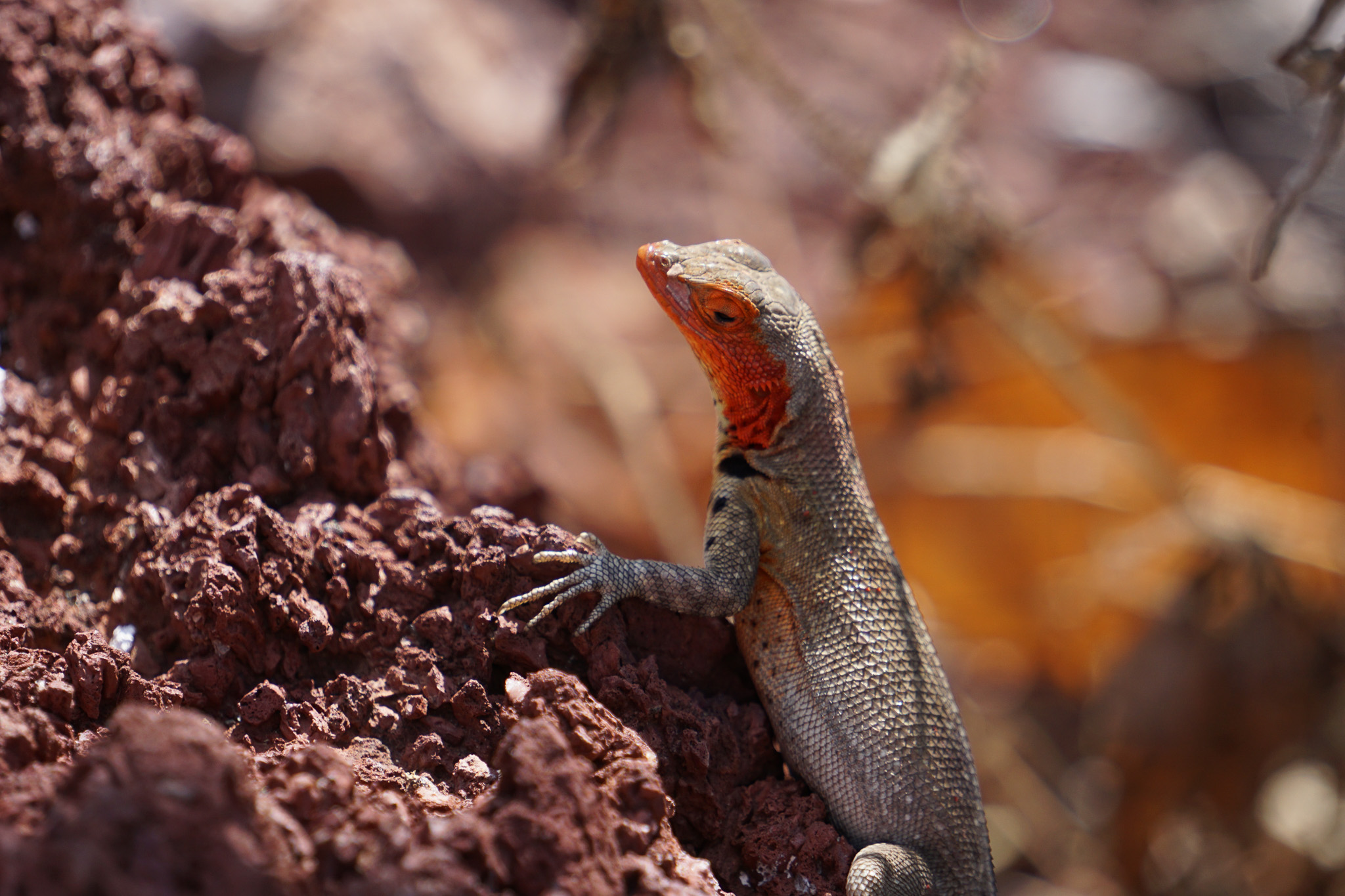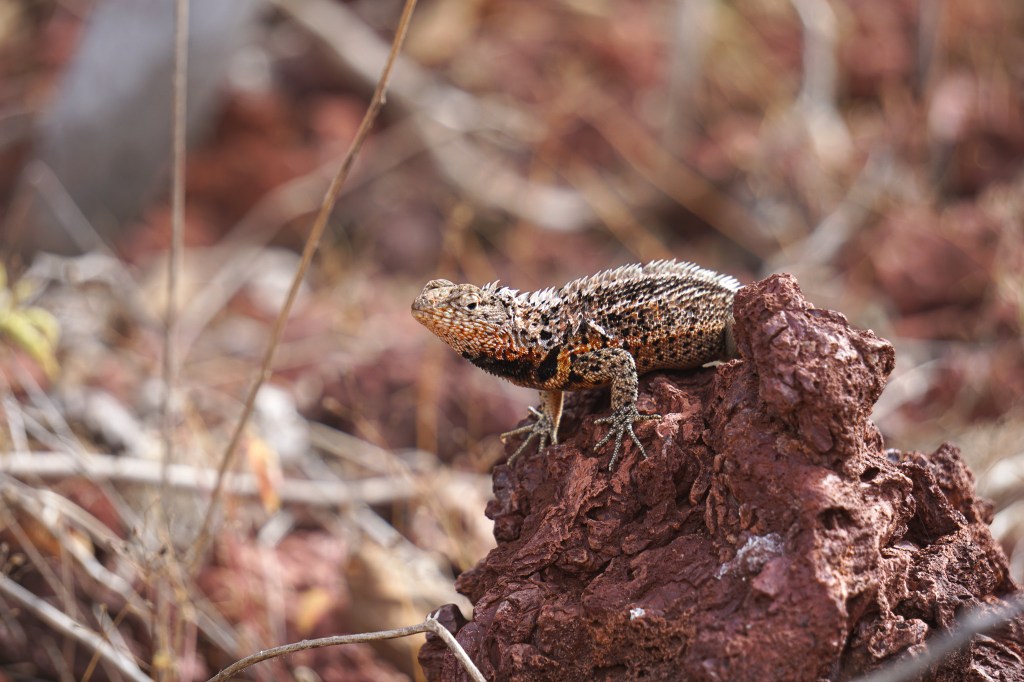 The Galapagos Mockingbirds were just there, coming to check us out, unafraid. This species, while they build nests on top of trees and cacti, prefers to run on land, rather than fly. It seems they also enjoy taking rides on the backs of iguanas, something I didn’t see but would have loved to. The Lava Lizards were a common sight throughout my time in the Galapagos – I found them to be stunning, and are commonly referred to as the little iguanas of Galapagos.