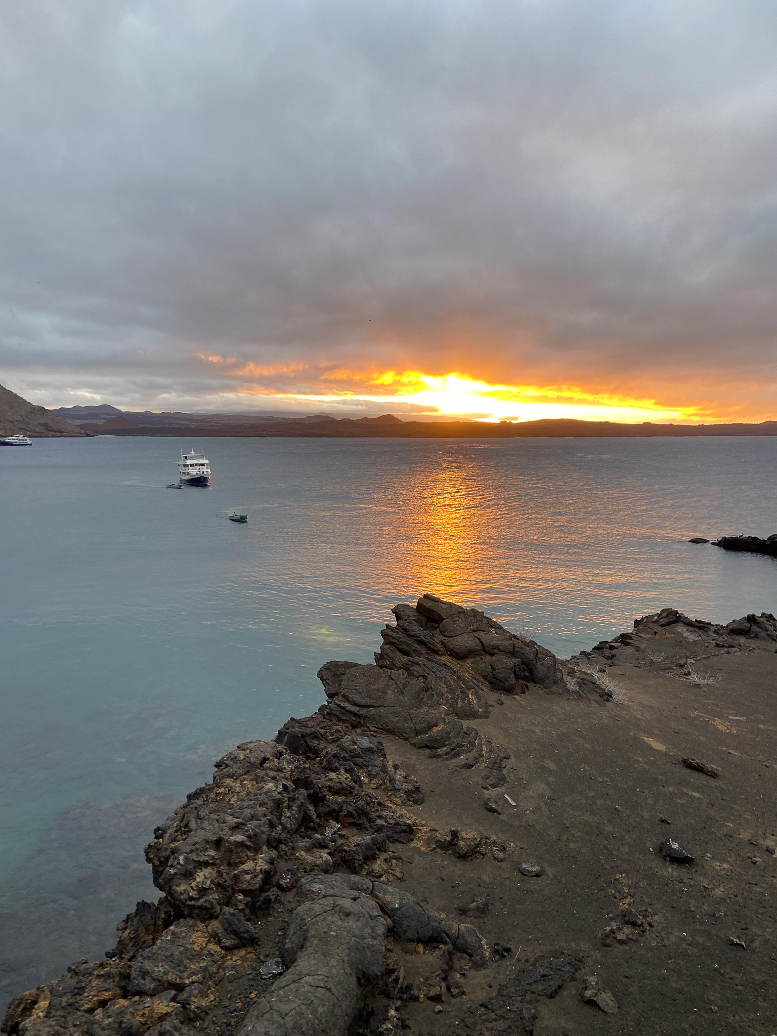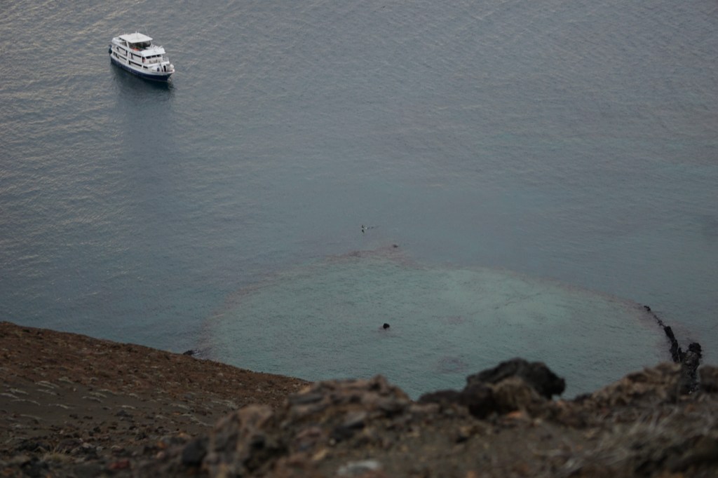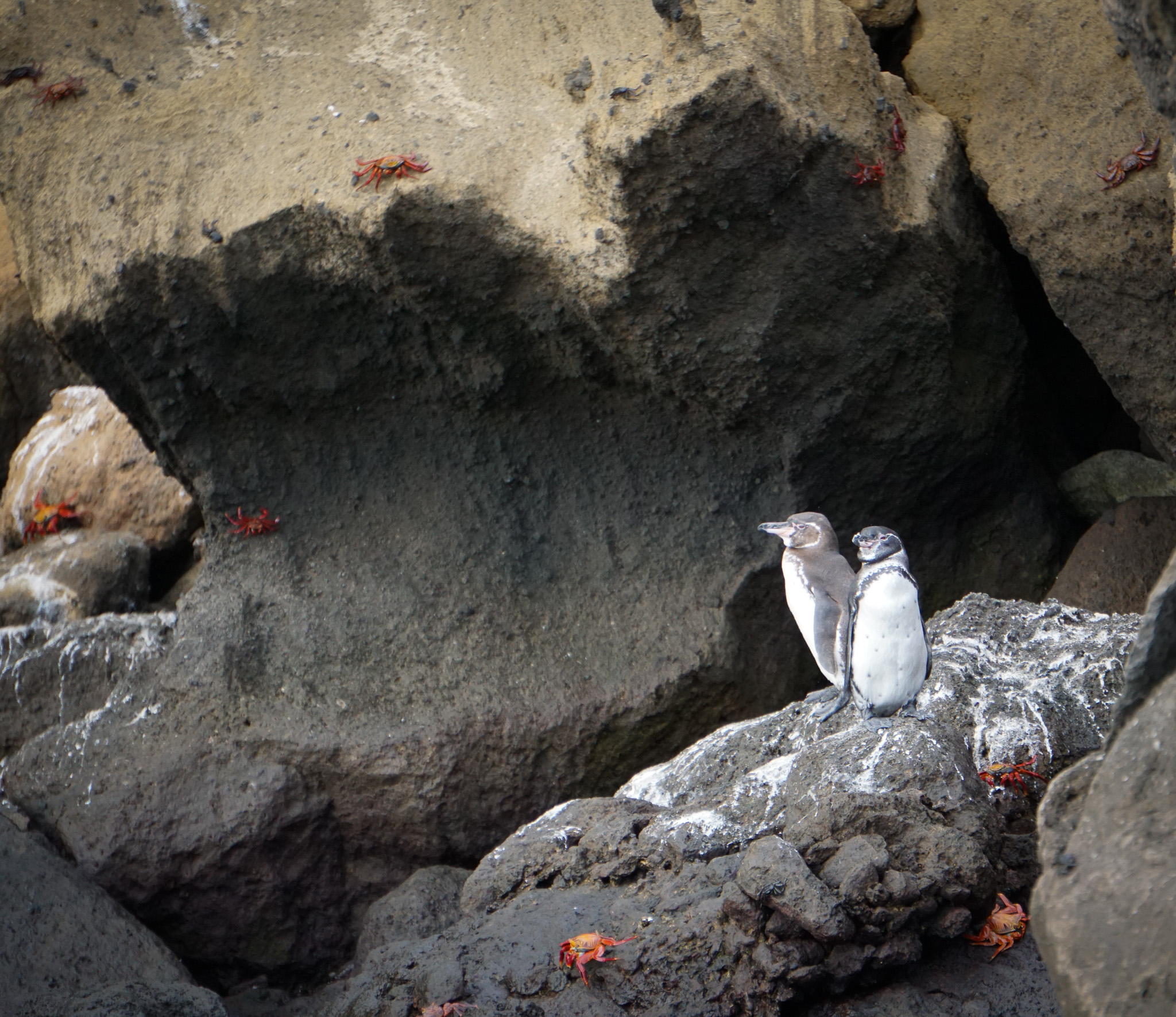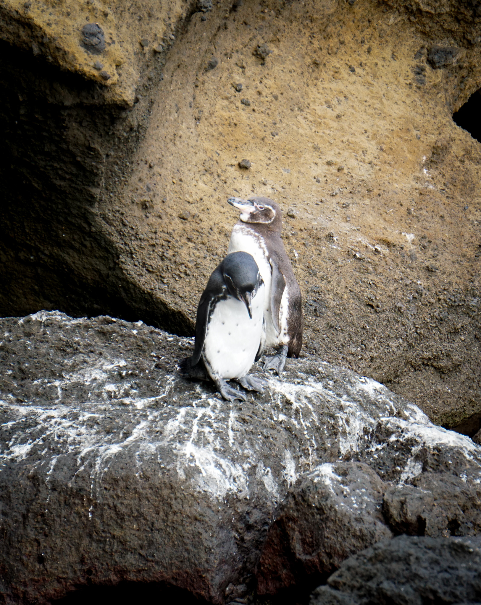 The day wasn’t over. Next, we were sailing to Bartholomew… and on our way day, we spotted the Blue Footed Booby and the penguins! I didn’t think I’d see the penguins – similar to the penguins, they are slowly disappearing from the islands. This is a shame. The Galapagos Penguins are record-holders. They are the world’s smallest penguin species and the most northerly. Whilst snorkeling I was able to see them diving and be a witness of their outstanding swimming skills… a stark contrast with their wabbling walk on the land.