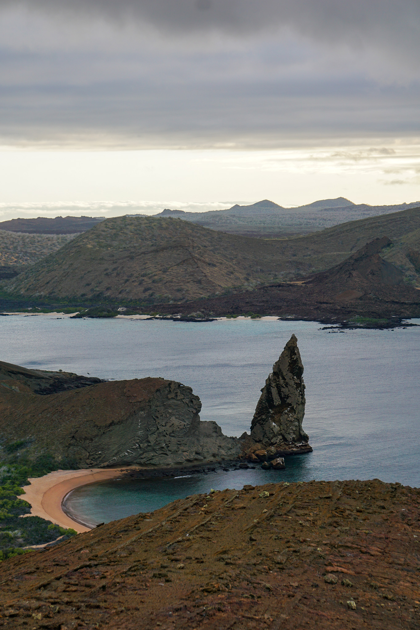 We finally go to Bartholomew, the most popular place that provides the most photographed views of the archipelago. The end of the day was fast approaching, so we had to rush a little to the top. The island is eerie but beautiful in its own right – you can see the lava formations, the empty craters, and some interesting, dead-looking vegetation. The special grey hairs on these succulents serve to reflect the harsh sun and reduce moisture loss – another fantastic adaption.