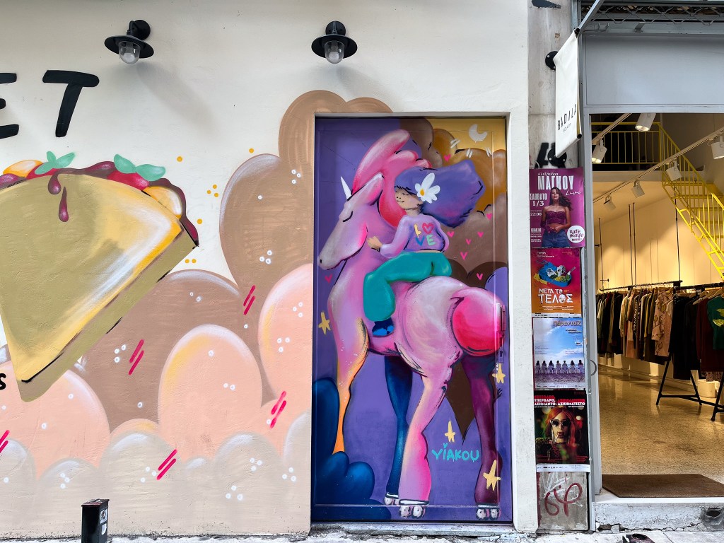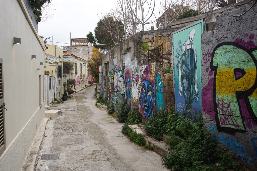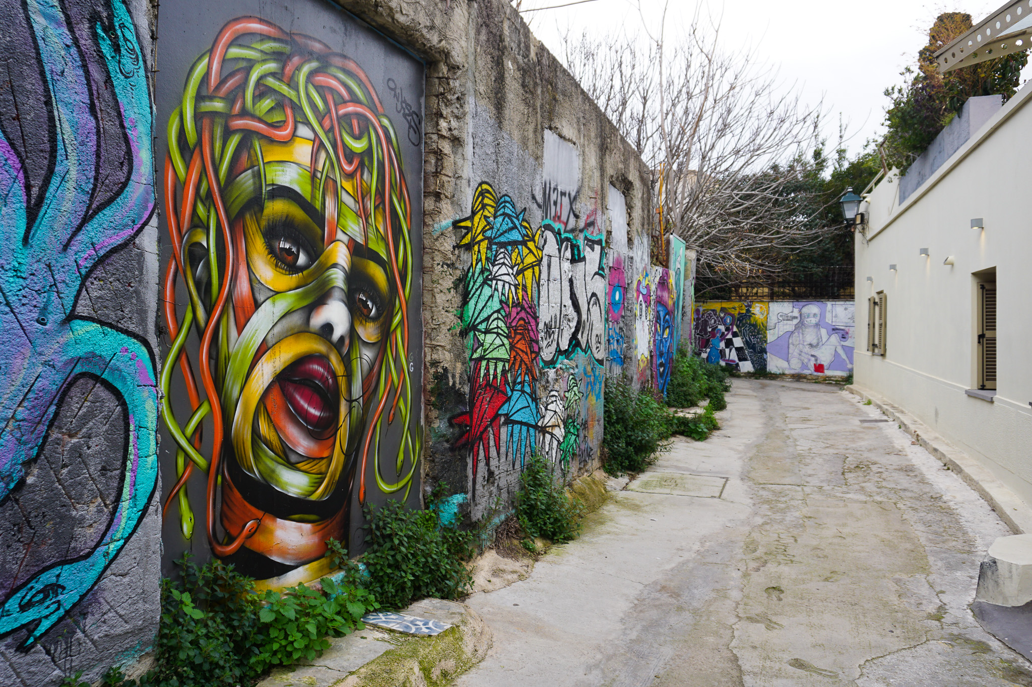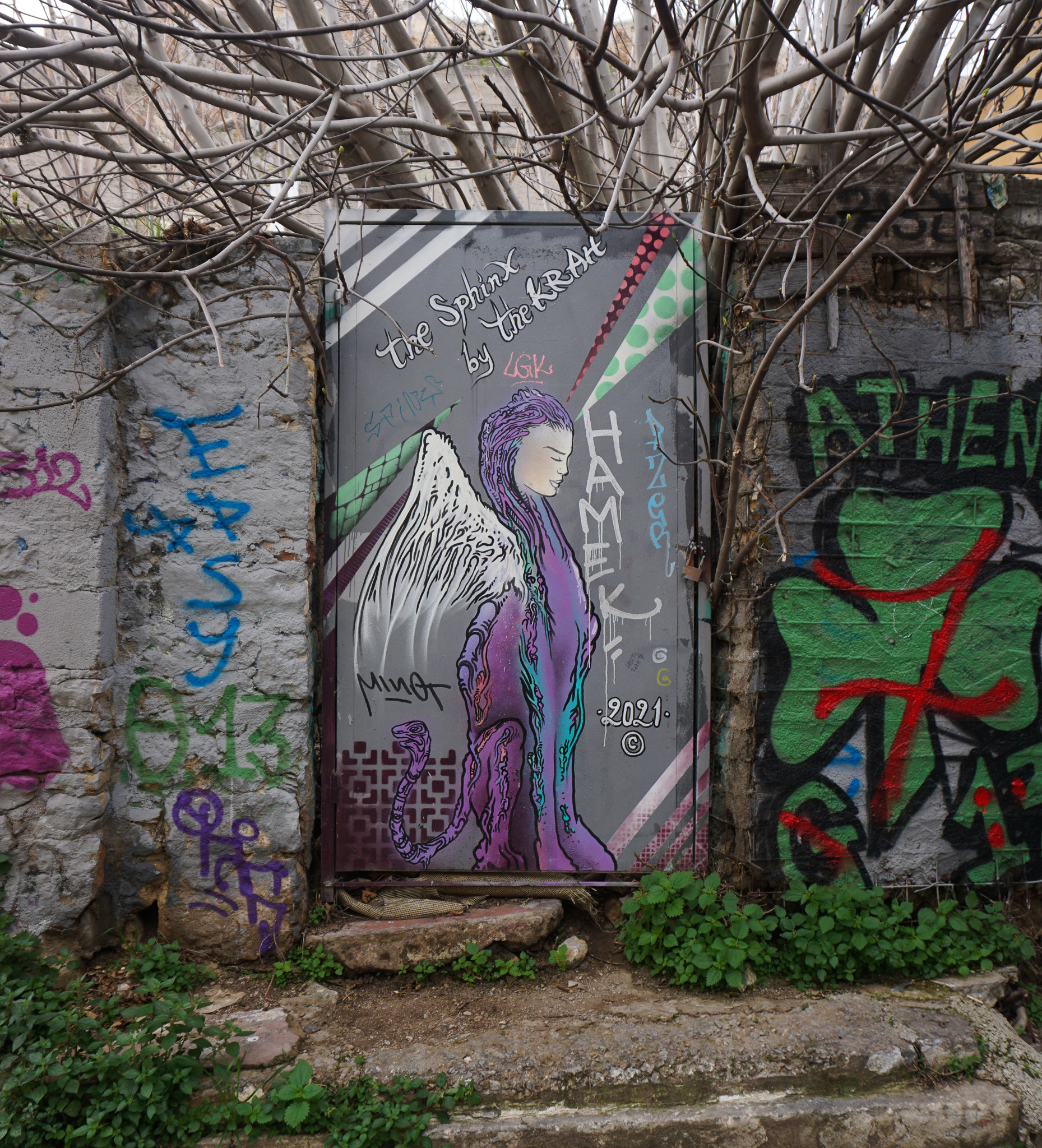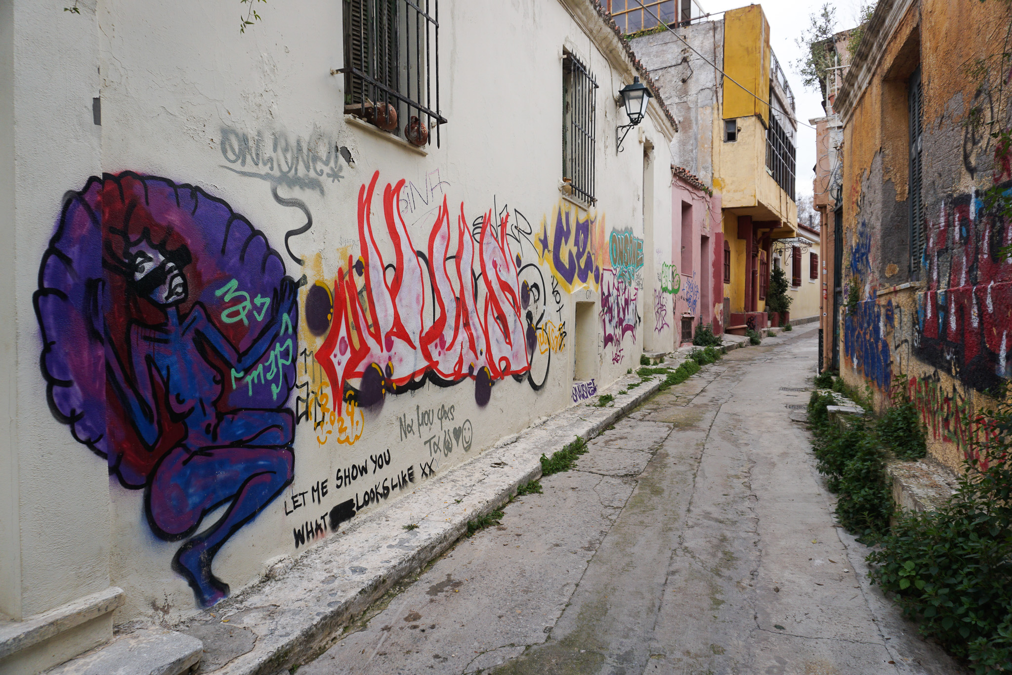 As mentioned briefly in my post about Plaka, there is a grittiness in the streets of Athens that reminds you this is a lived place, not a manicured scene for tourists to enjoy. Sadly, a lot of the stunning pieces of street art had been vandalised with graffiti – tags and symbols, some of them with sexual innuendo. It was everywhere in Plaka, but also quite notable in the neighbourhood of Psyri.